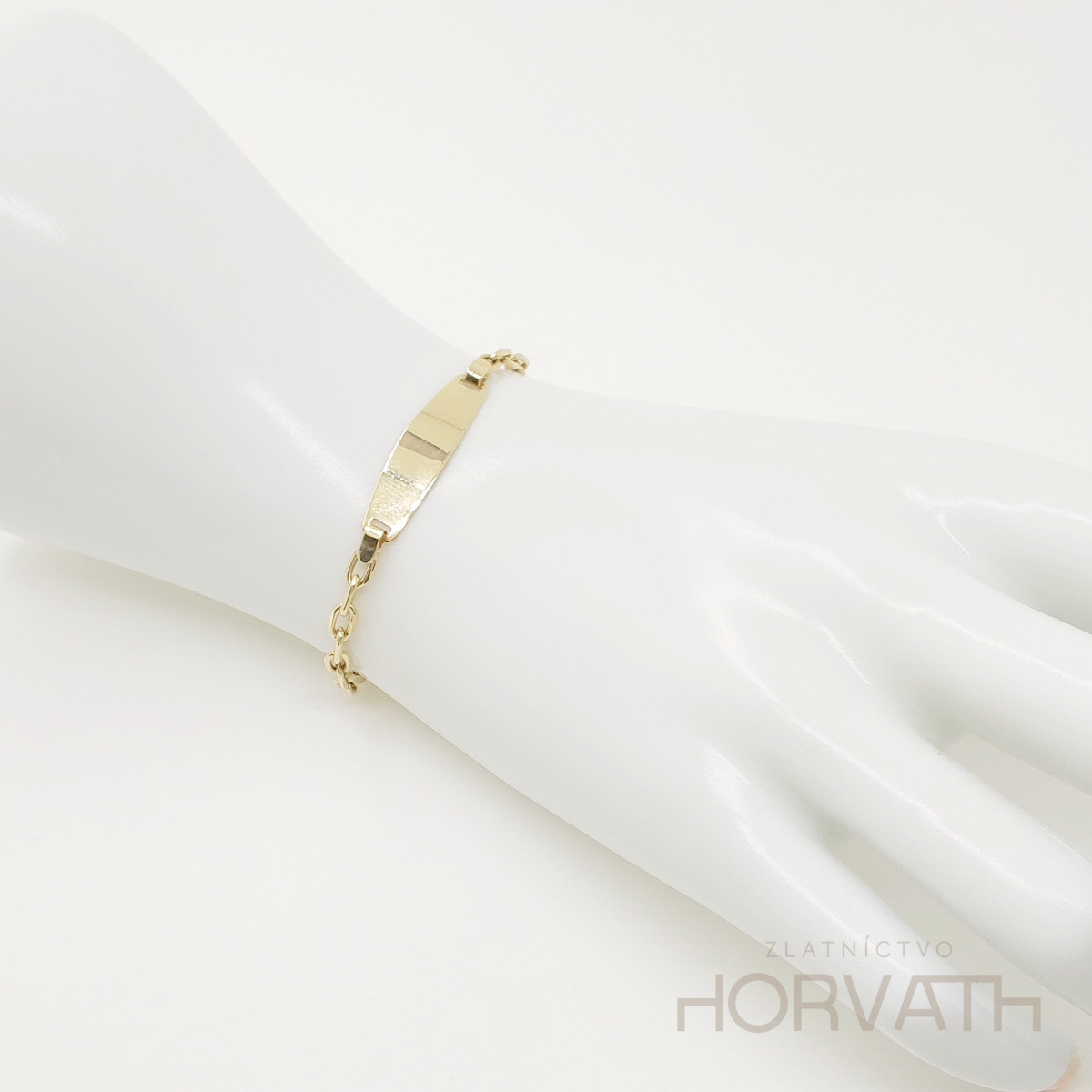 Zlatý detský náramok s platničkou, vyrobený zo 14 karátového zlata 585/1000.