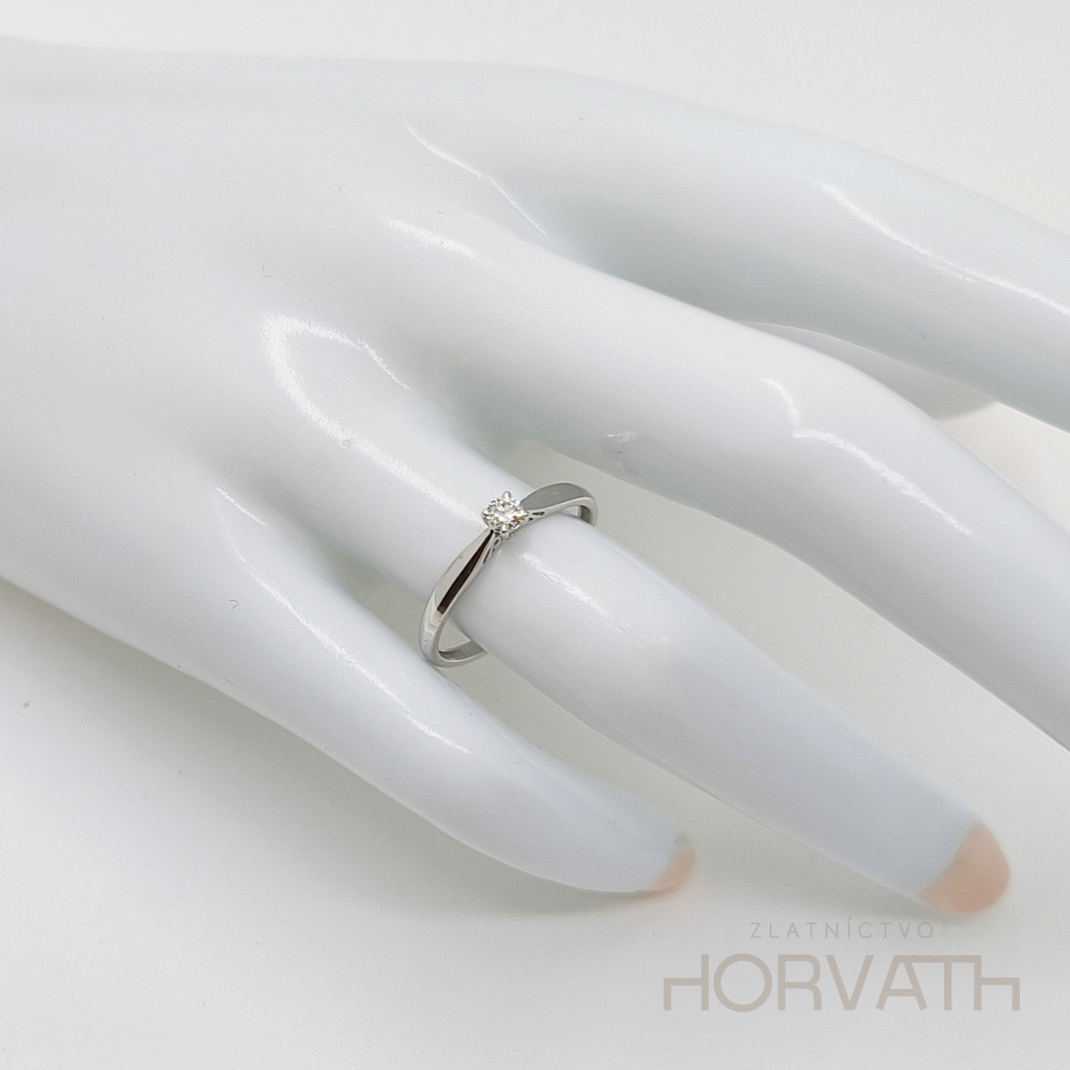 Zlatý prsteň zdobený briliantom je vyrobený zo 14 karátového zlata 585/1000.Čistota briliantu SI2 ,Farba H.Tento prsteň Vám vieme vyrobiť aj v inej veľkosti,aj v žltom zlate.Doba dodania prsteňa na zákazku je 21 dní. Prsteň zasielame v našom luxusnom balení spolu aj s certifikátom pravosti.Váha prsteňa je 1,15 gr.