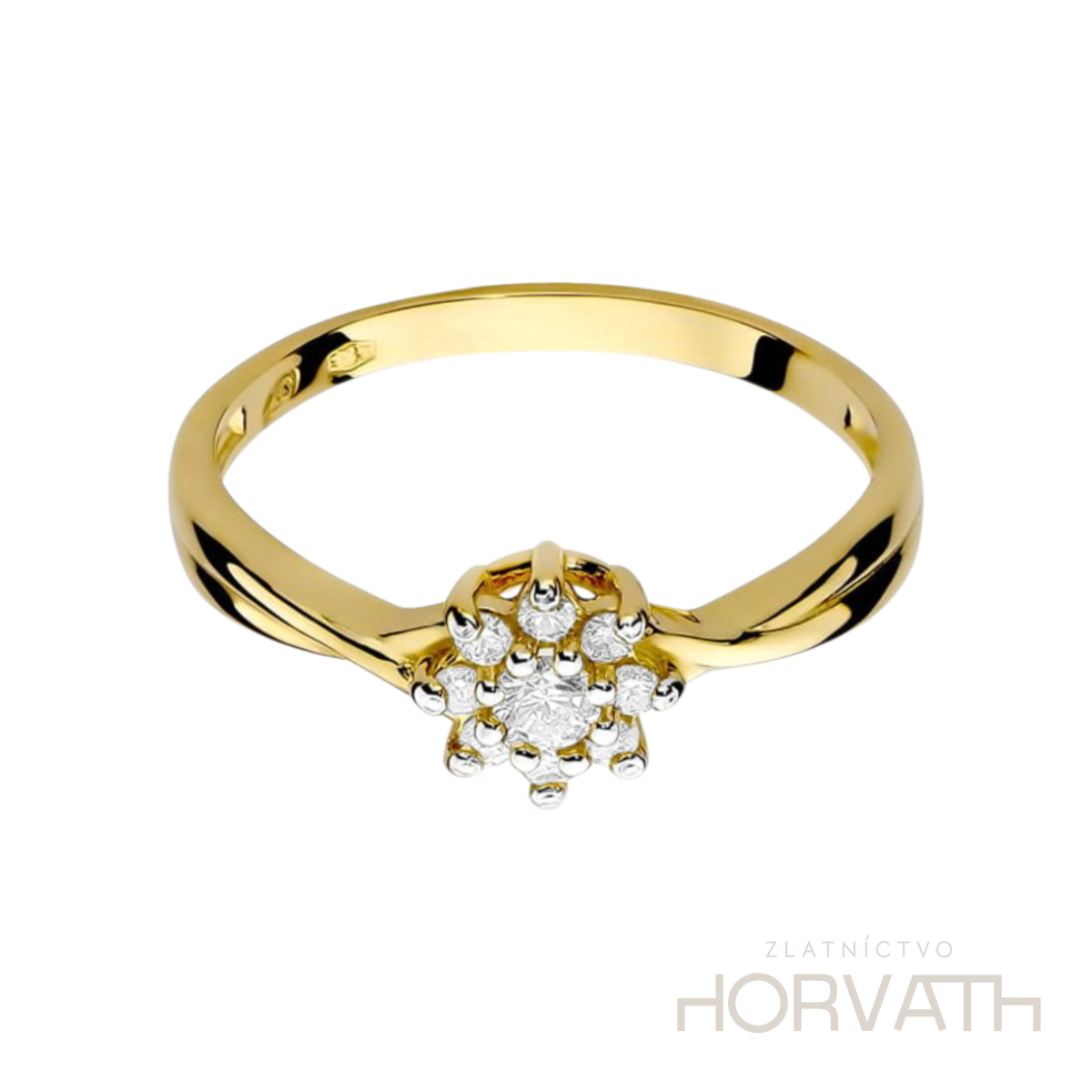Čaká Vás významná udalosť akou sú zásnuby,narodenie dieťaťa,alebo chcete potešiť vašu polovičku na výročie či inú udalosť?Tento luxusný briliantový prsteň z našej kolekcie je tou správnou voľbou.Karátovosť centrálneho briliantu je 0,10 ct a postranných briliantov je 0,11 ct. Stavba prsteňa sa smerom k briliantu po bokoch zužuje,čím samotný briliant krásne vynikne.