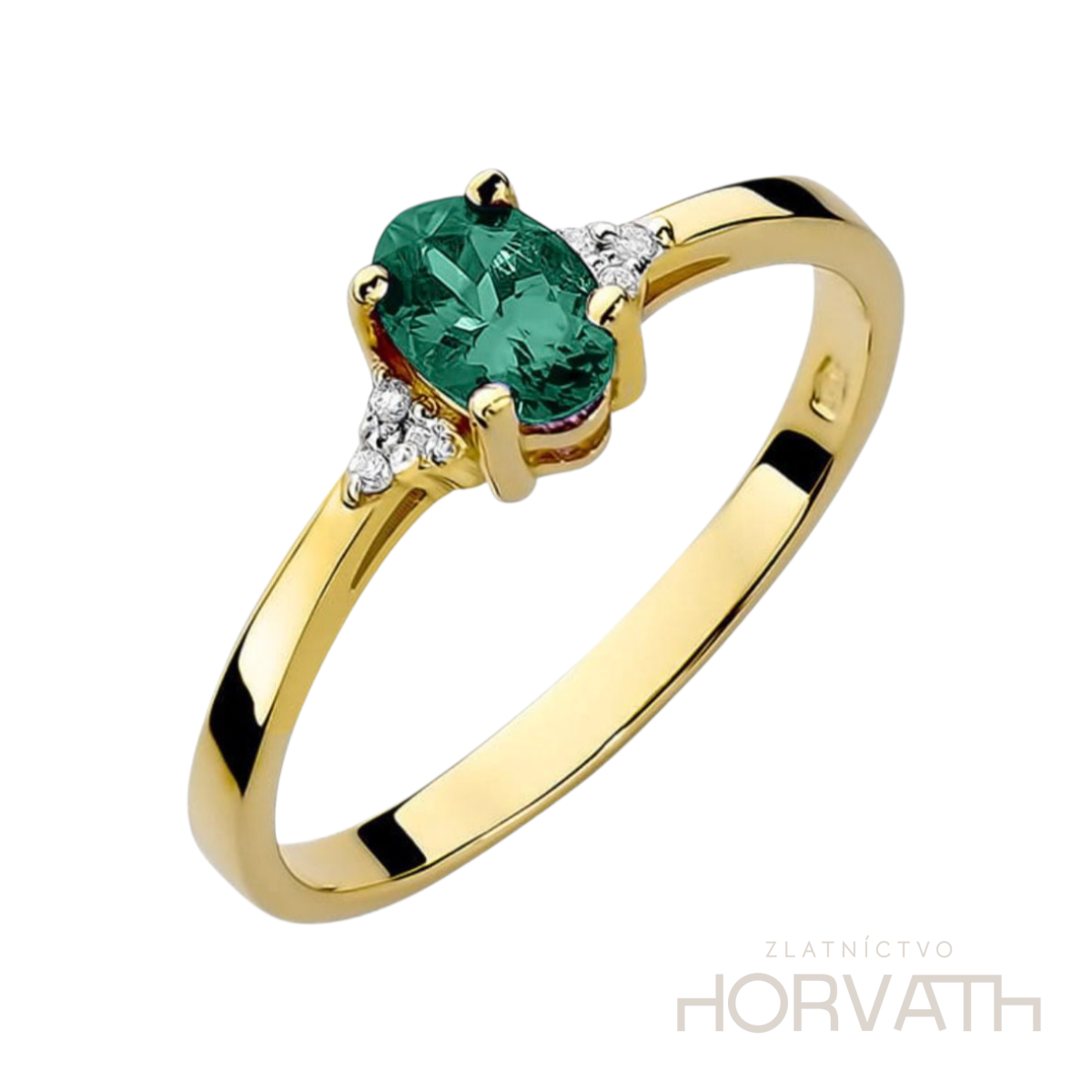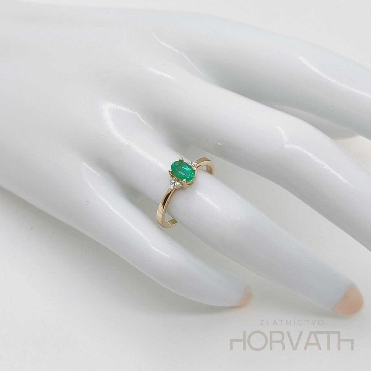 Unikátny prstienok ktorý dokonalo podčiarkne vašu krásu je vhodný aj na zásnuby,či inú významnú príležitosť.Karátovosť smaragdu je 0,40 ct,po stranách je prsteň vykladaný briliantami,ktoré dodávajú prstienku jedinečnosť.Karátovosť briliantov je 0,052 ct.