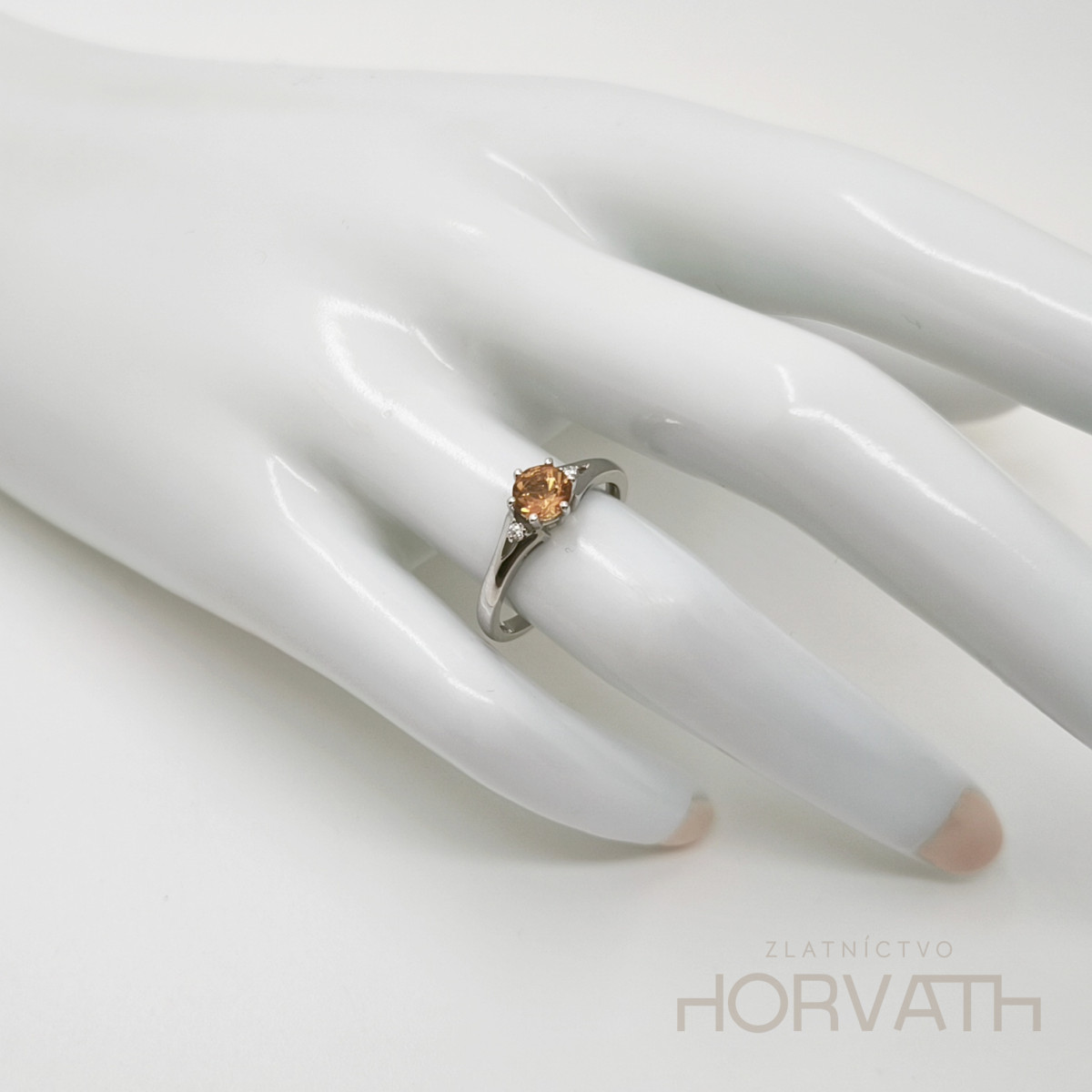 Tento luxusný briliantový prsteň z našej kolekcie je vhodný na zásnuby ale aj na inú udalosť.Karátovosť citrínu je 0,50 ct a postranných briliantov je 0,03 ct.