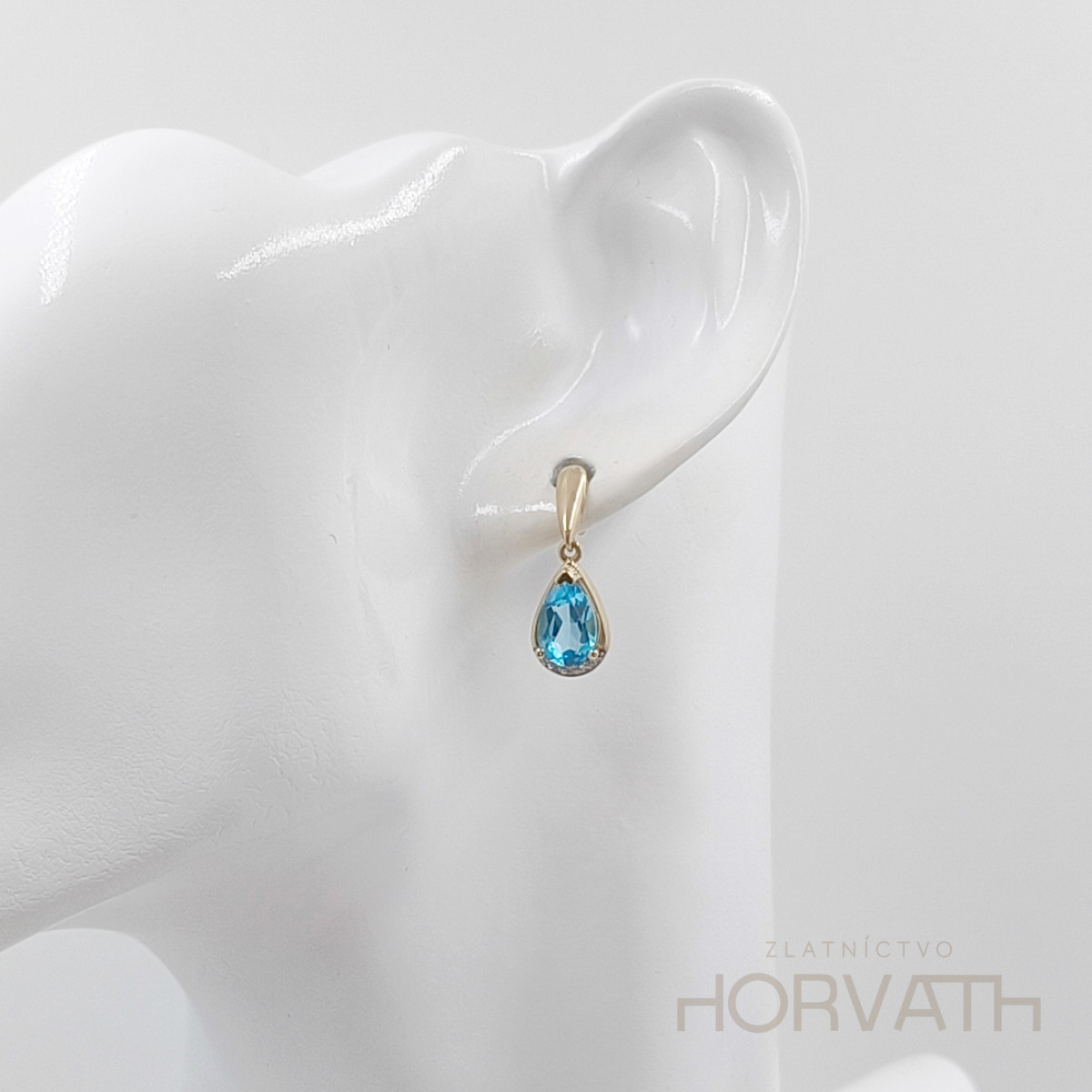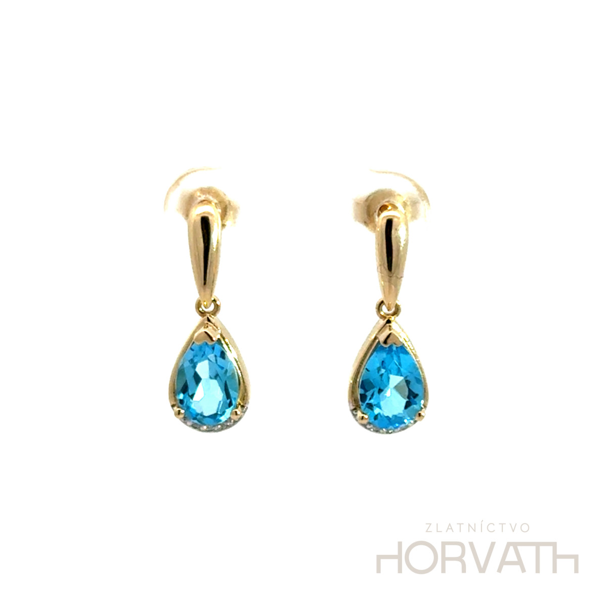 Exkluzívne zlaté náušnice sú vyrobené zo 14 karátového zlata 585/000. Náušnice zdobí topás s karátovosťou 2x 0,50 ct a brilianty s karátovosťou 0,05.Čistota briliantov je SI2 farba H. Rozmer náušníc je 20x7 mm.