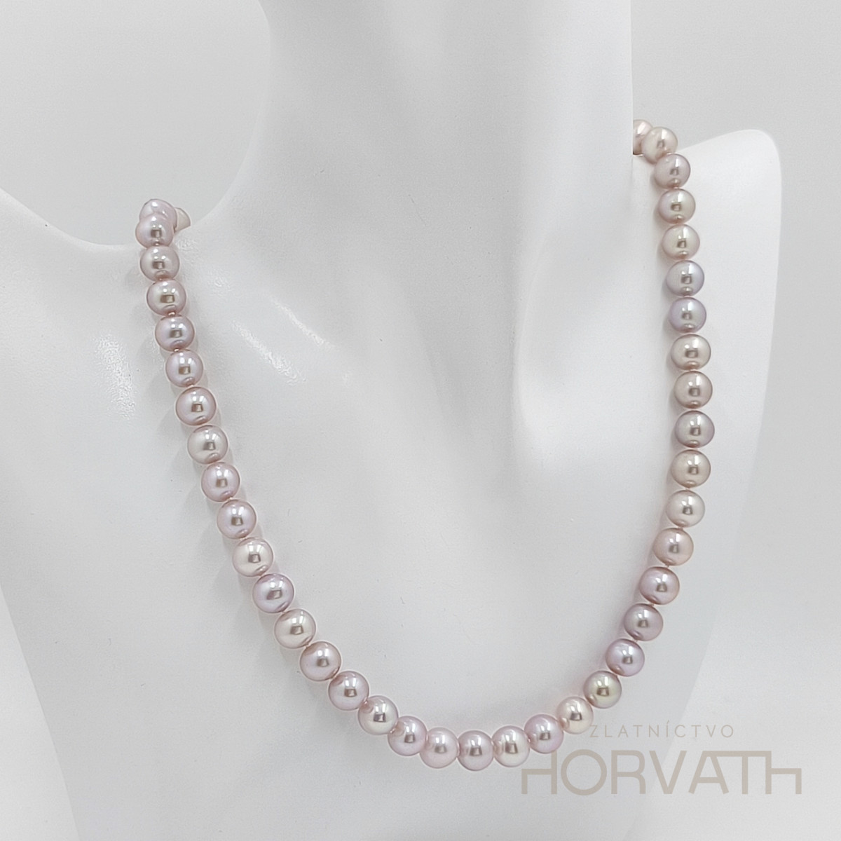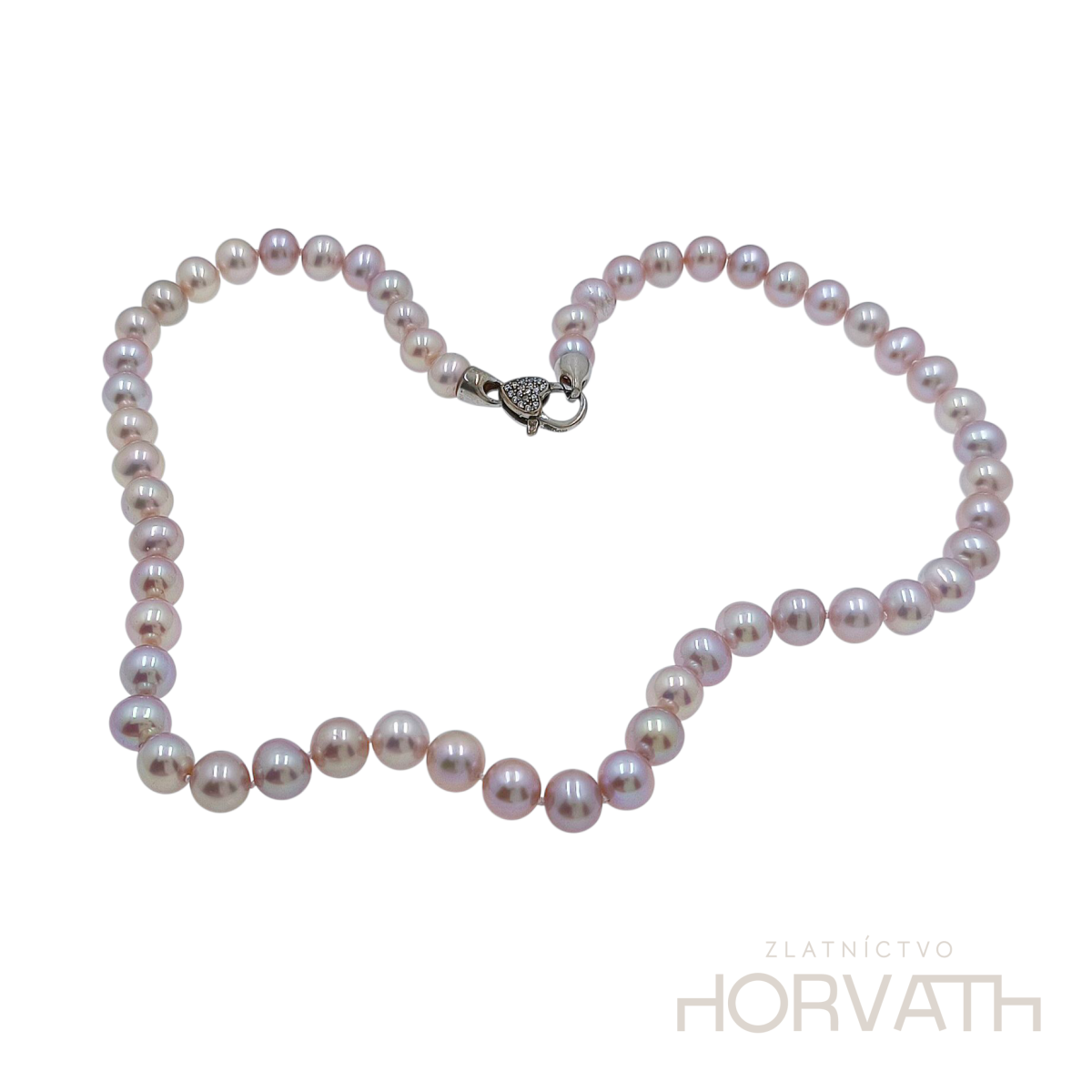 Náhrdelník z riečnych perál, perly majú guľatý tvar. Zapínanie je vyrobené zo striebra 925/1000.