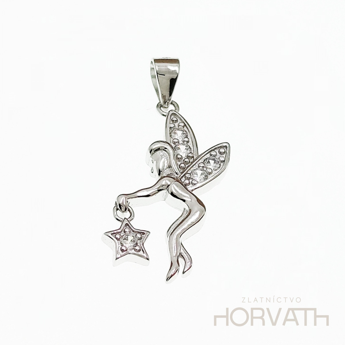 Strieborný prívesok .Typ povrchovej úpravy u tohto šperku je ródium.Ródium je chemický prvok obľúbený u šperkárov.Je to kov strieborno-bielej farby a patrí medzi najdrahšie kovy.Táto povrchová úprava slúži na ochranu striebra ,predlžuje striebru životnosť,striebro tak neoxiduje,nežltne a stále sa krásne leskne.Vyrobený zo striebra 925/000.