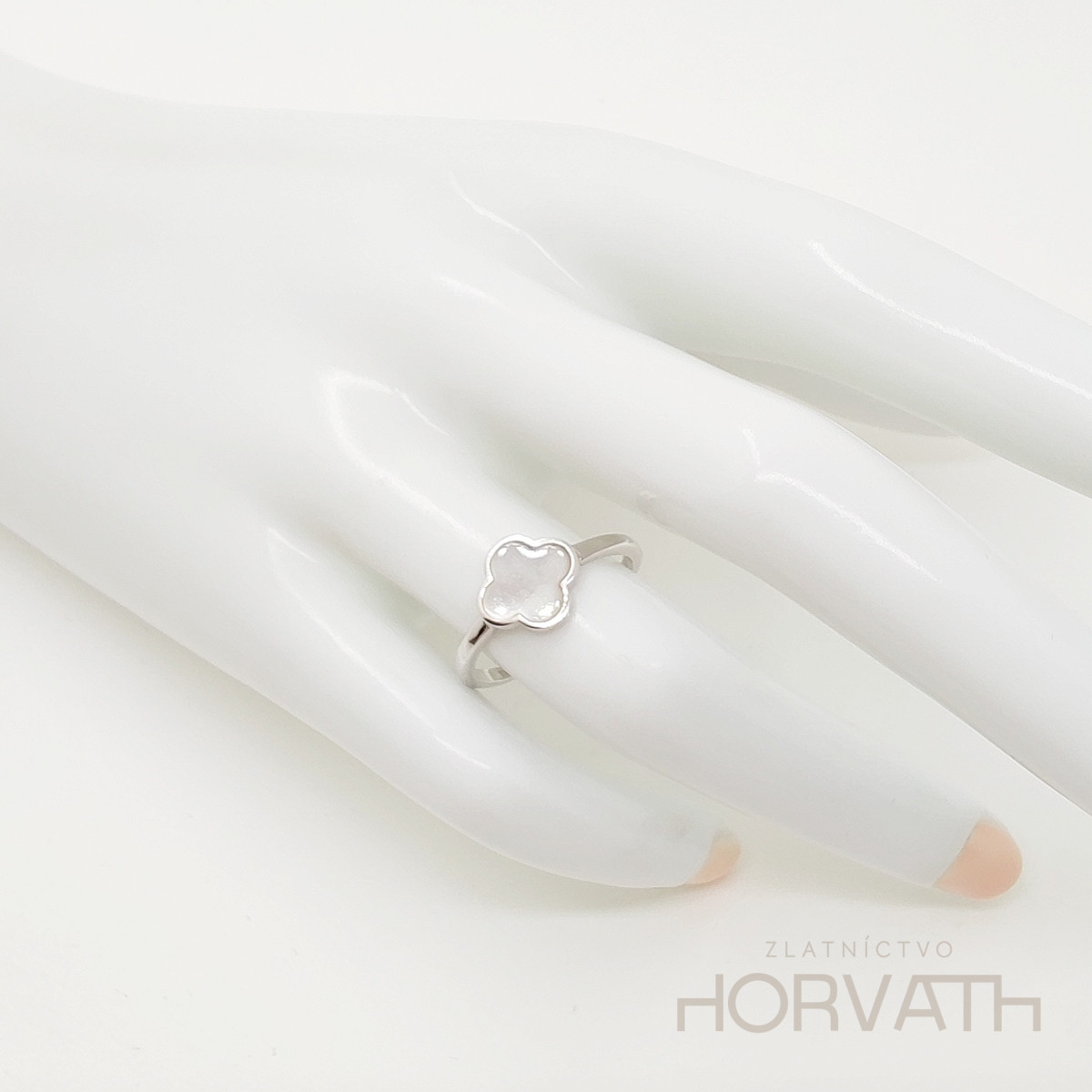 Strieborný dámsky prsteň vyrobený zo striebra 925/000.Typ povrchovej úpravy u tohto šperku je ródium.Ródium je chemický prvok obľúbený u šperkárov.Je to kov strieborno-bielej farby a patrí medzi najdrahšie kovy.Táto povrchová úprava slúži na ochranu striebra ,predlžuje striebru životnosť,striebro tak neoxiduje,nežltne a stále sa krásne leskne.