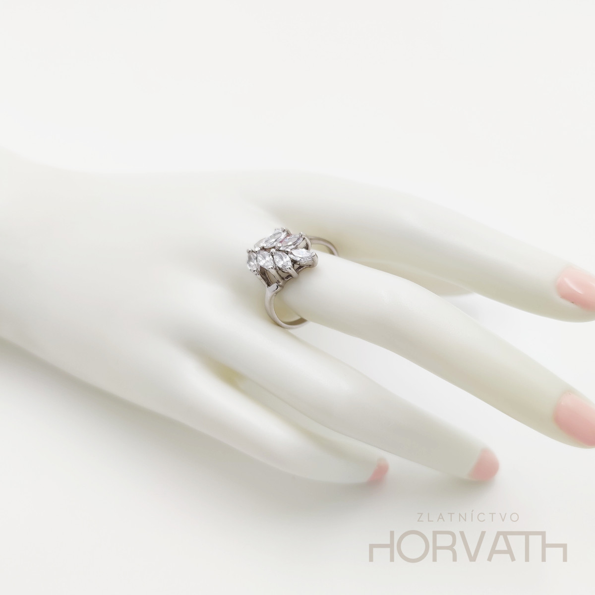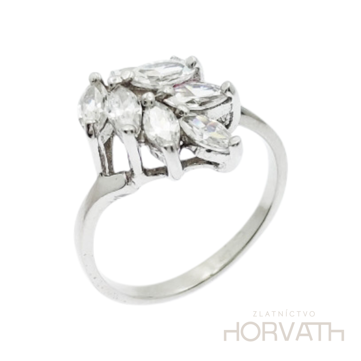 Strieborný dámsky prsteň vyrobený zo striebra 925/000.Typ povrchovej úpravy u tohto šperku je ródium.Ródium je chemický prvok obľúbený u šperkárov.Je to kov strieborno-bielej farby a patrí medzi najdrahšie kovy.Táto povrchová úprava slúži na ochranu striebra ,predlžuje striebru životnosť,striebro tak neoxiduje,nežltne a stále sa krásne leskne.