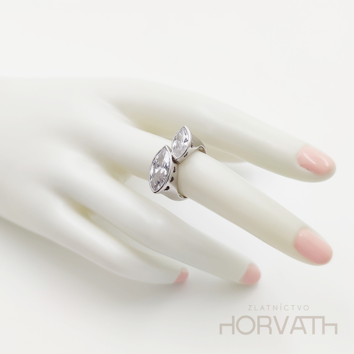 Strieborný dámsky prsteň vyrobený zo striebra 925/000.Typ povrchovej úpravy u tohto šperku je ródium.Ródium je chemický prvok obľúbený u šperkárov.Je to kov strieborno-bielej farby a patrí medzi najdrahšie kovy.Táto povrchová úprava slúži na ochranu striebra ,predlžuje striebru životnosť,striebro tak neoxiduje,nežltne a stále sa krásne leskne.