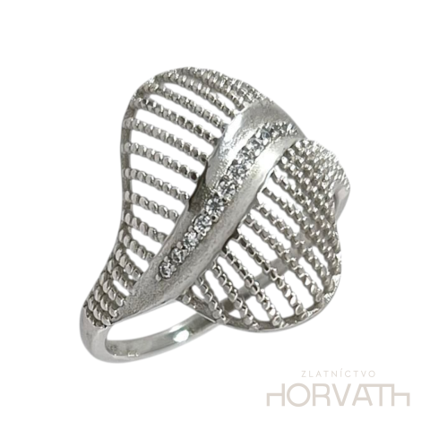 Strieborný dámsky prsteň vyrobený zo striebra 925/000.Typ povrchovej úpravy u tohto šperku je ródium.Ródium je chemický prvok obľúbený u šperkárov.Je to kov strieborno-bielej farby a patrí medzi najdrahšie kovy.Táto povrchová úprava slúži na ochranu striebra ,predlžuje striebru životnosť,striebro tak neoxiduje,nežltne a stále sa krásne leskne