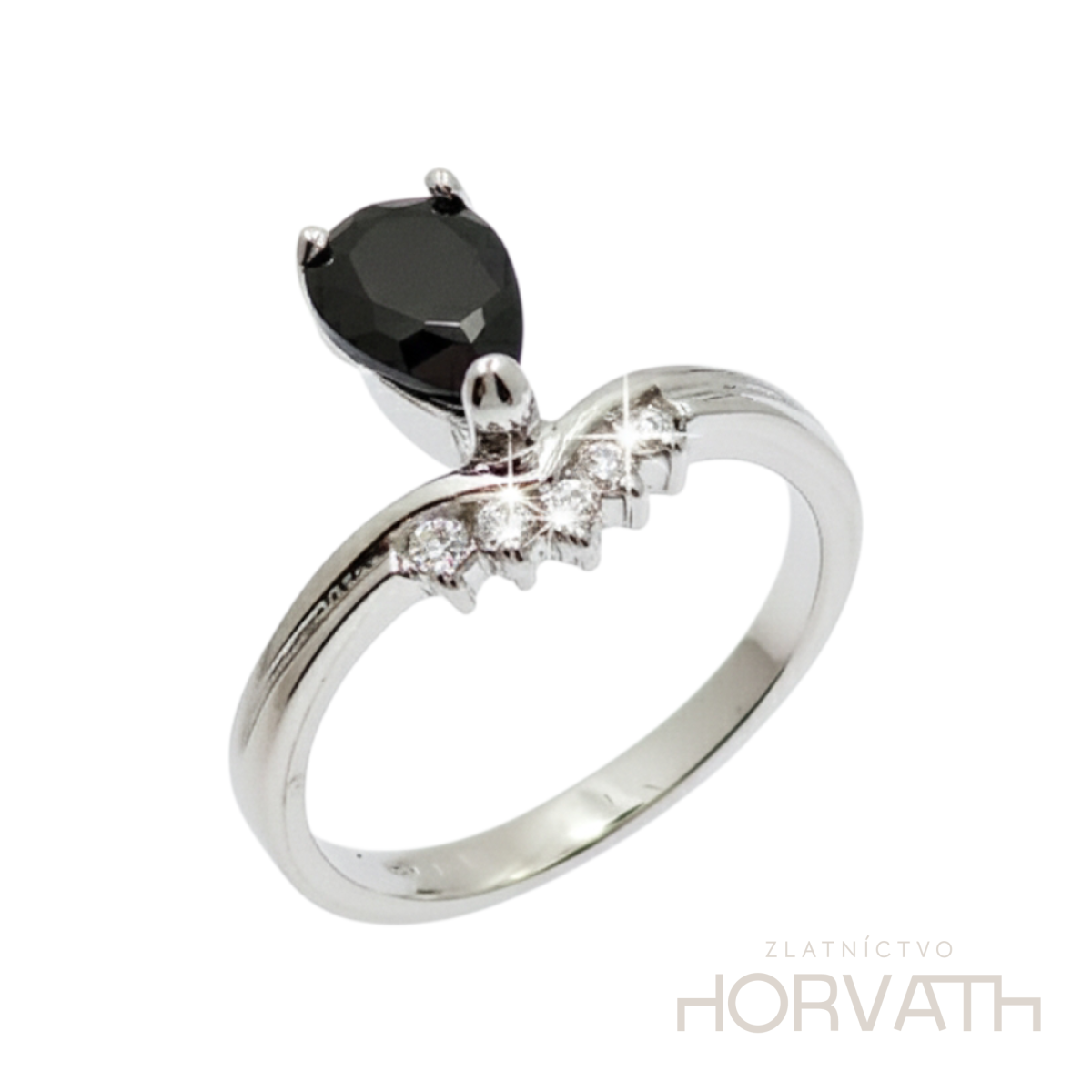 Strieborný dámsky prsteň vyrobený zo striebra 925/000.Typ povrchovej úpravy u tohto šperku je ródium.Ródium je chemický prvok obľúbený u šperkárov.Je to kov strieborno-bielej farby a patrí medzi najdrahšie kovy.Táto povrchová úprava slúži na ochranu striebra ,predlžuje striebru životnosť,striebro tak neoxiduje,nežltne a stále sa krásne leskne