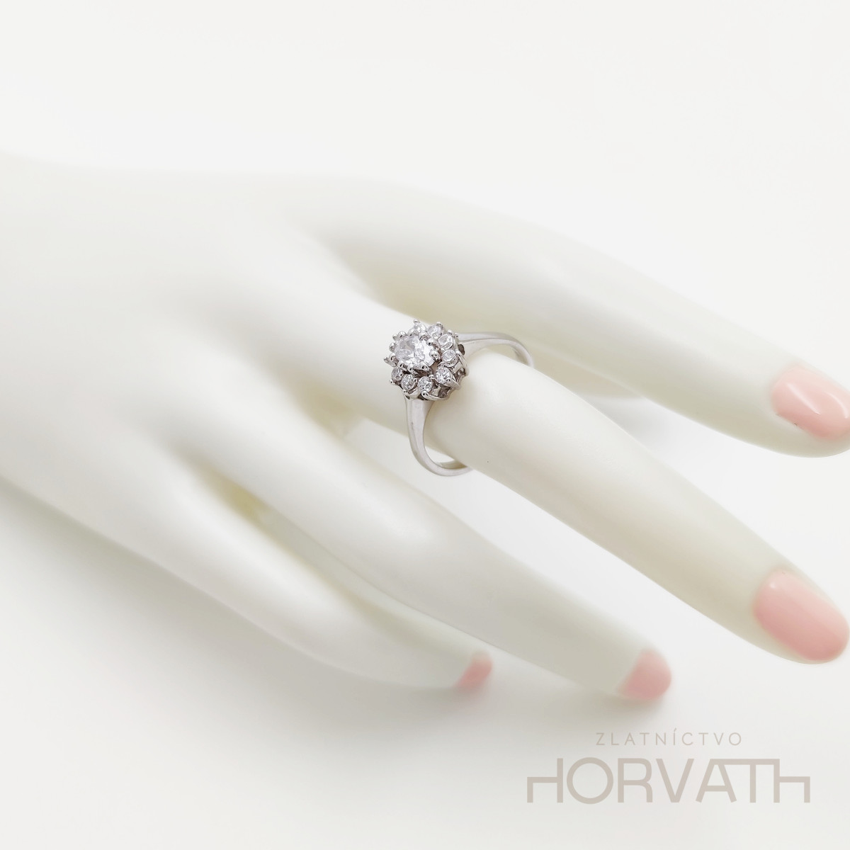 Strieborný dámsky prsteň vyrobený zo striebra 925/000.Typ povrchovej úpravy u tohto šperku je ródium.Ródium je chemický prvok obľúbený u šperkárov.Je to kov strieborno-bielej farby a patrí medzi najdrahšie kovy.Táto povrchová úprava slúži na ochranu striebra ,predlžuje striebru životnosť,striebro tak neoxiduje,nežltne a stále sa krásne leskne.