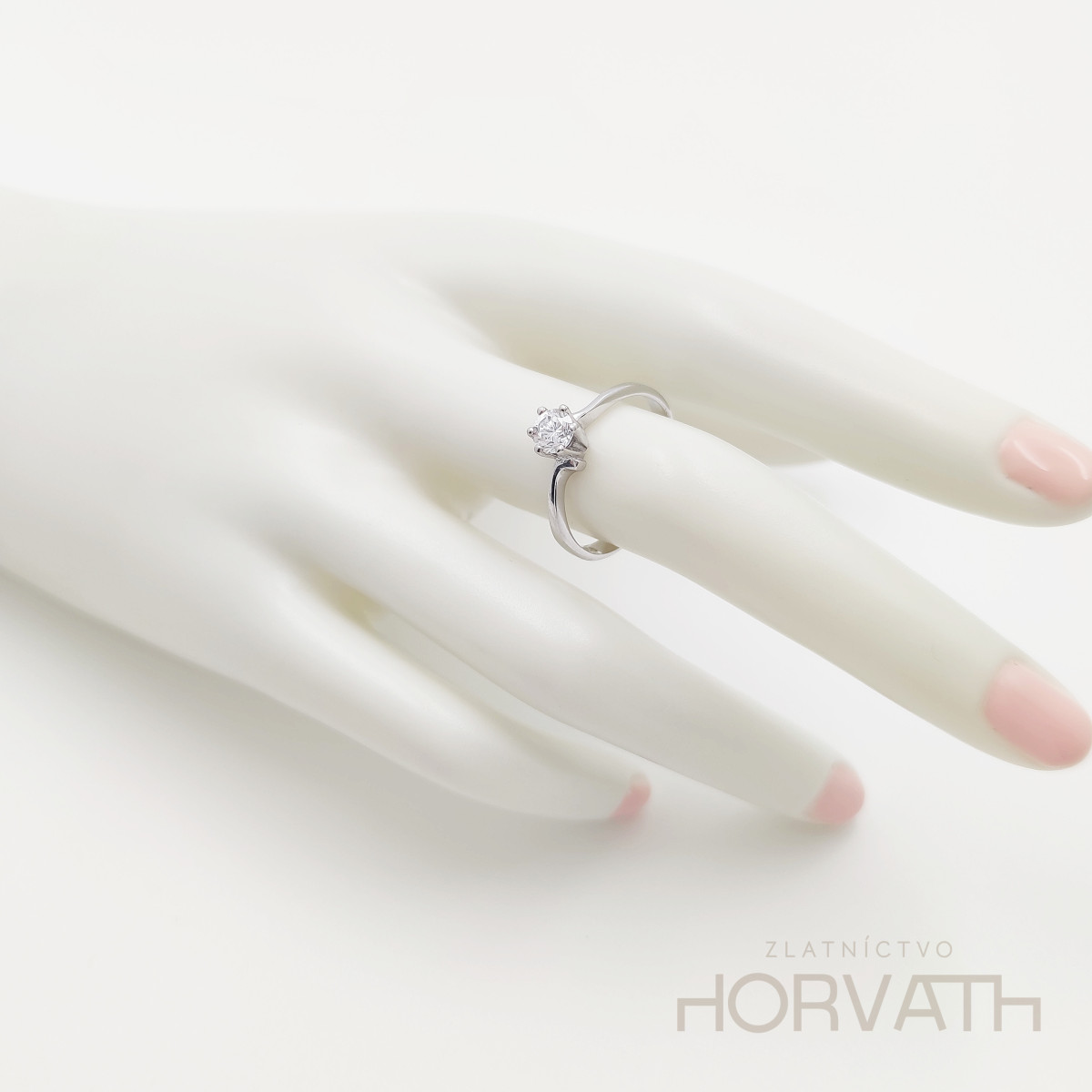 Strieborný dámsky zásnubný prsteň vyrobený zo striebra 925/000.Typ povrchovej úpravy u tohto šperku je ródium.Ródium je chemický prvok obľúbený u šperkárov.Je to kov strieborno-bielej farby a patrí medzi najdrahšie kovy.Táto povrchová úprava slúži na ochranu striebra ,predlžuje striebru životnosť,striebro tak neoxiduje,nežltne a stále sa krásne leskne.Priemer kameňa je 4mm.