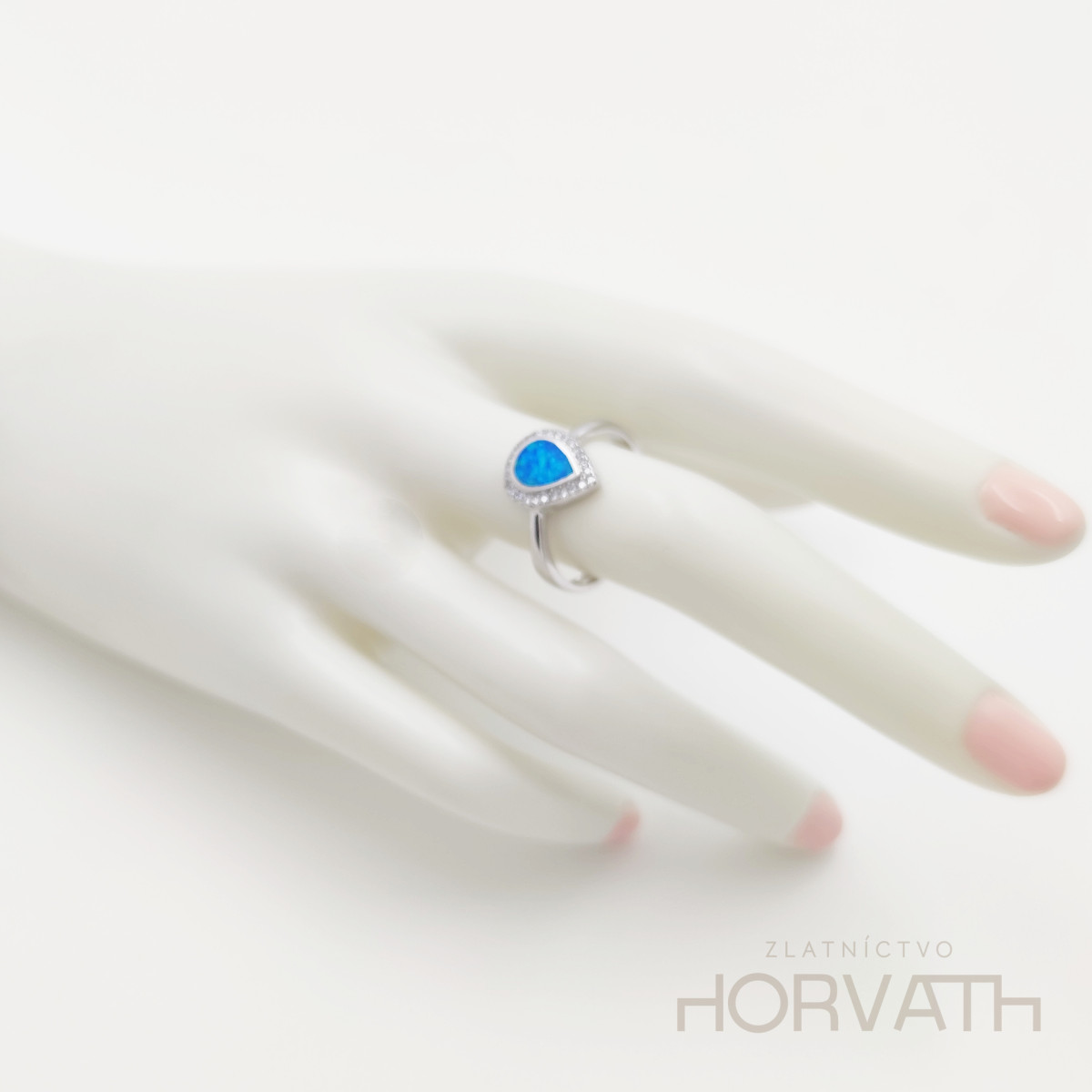Strieborný dámsky prsteň vyrobený zo striebra 925/000.Typ povrchovej úpravy u tohto šperku je ródium.Ródium je chemický prvok obľúbený u šperkárov.Je to kov strieborno-bielej farby a patrí medzi najdrahšie kovy.Táto povrchová úprava slúži na ochranu striebra ,predlžuje striebru životnosť,striebro tak neoxiduje,nežltne a stále sa krásne leskne.Priemer opálu je 6mm.
