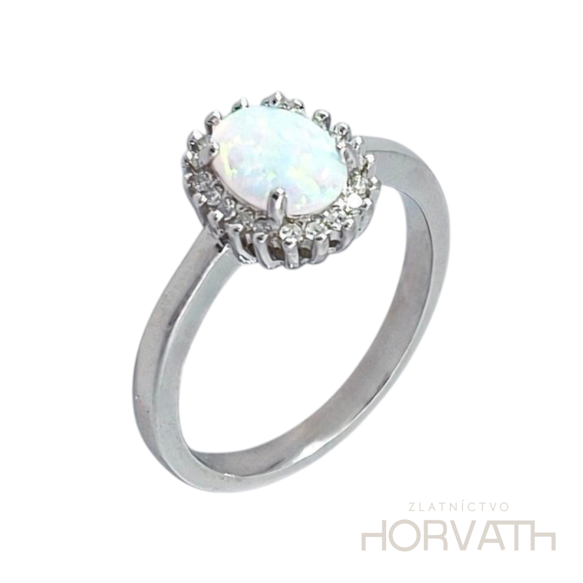 Strieborný dámsky prsteň zdobený opálom a zirkónmi je vyrobený zo striebra 925/000.Typ povrchovej úpravy u tohto šperku je ródium.Ródium je chemický prvok obľúbený u šperkárov.Je to kov strieborno-bielej farby a patrí medzi najdrahšie kovy.Táto povrchová úprava slúži na ochranu striebra ,predlžuje striebru životnosť,striebro tak neoxiduje,nežltne a stále sa krásne leskne
