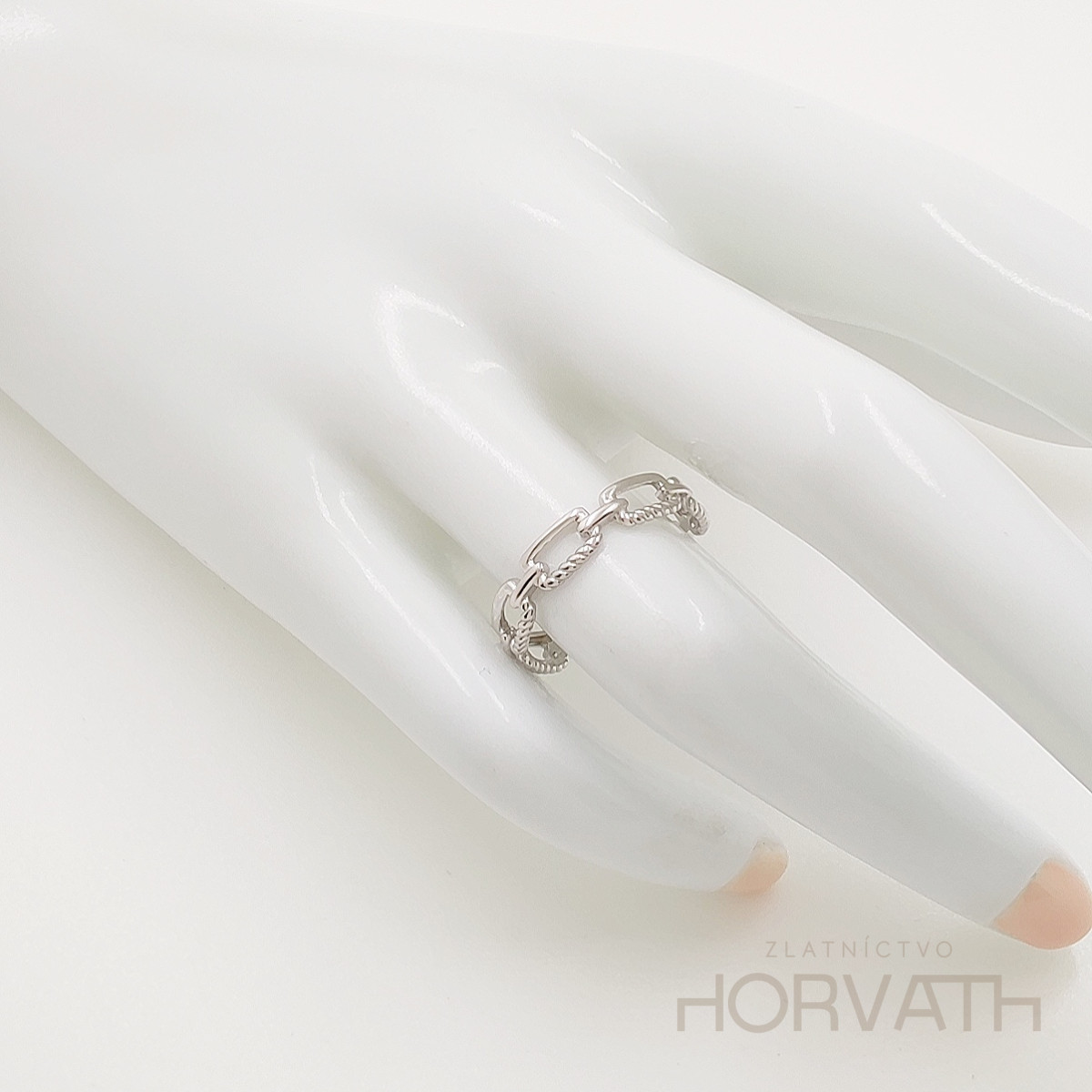 Strieborný dámsky prsteň vyrobený zo striebra 925/000.Typ povrchovej úpravy u tohto šperku je ródium.Ródium je chemický prvok obľúbený u šperkárov.Je to kov strieborno-bielej farby a patrí medzi najdrahšie kovy.Táto povrchová úprava slúži na ochranu striebra ,predlžuje striebru životnosť,striebro tak neoxiduje,nežltne a stále sa krásne leskne.