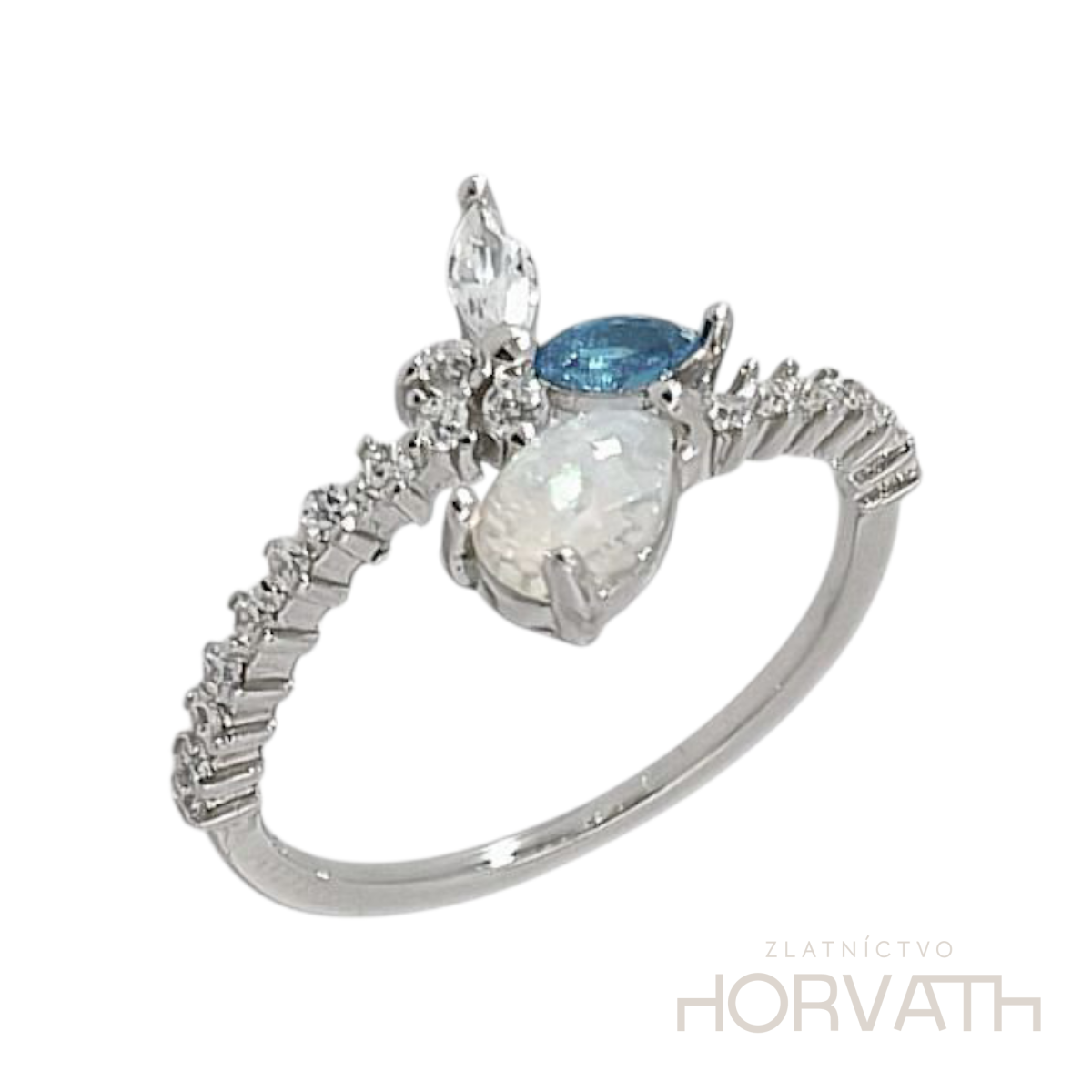 Strieborný dámsky prsteň je vyrobený zo striebra 925/000.Typ povrchovej úpravy u tohto šperku je ródium.Ródium je chemický prvok obľúbený u šperkárov.Je to kov strieborno-bielej farby a patrí medzi najdrahšie kovy.Táto povrchová úprava slúži na ochranu striebra ,predlžuje striebru životnosť,striebro tak neoxiduje,nežltne a stále sa krásne leskne.