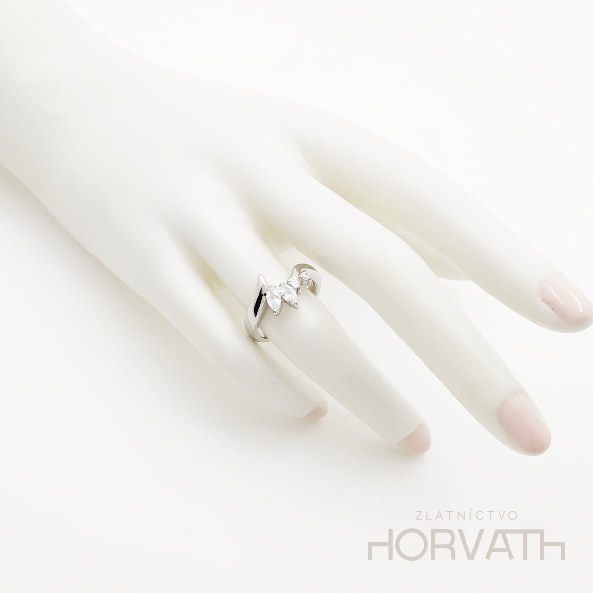 Strieborný dámsky prsteň vyrobený zo striebra 925/000.Typ povrchovej úpravy u tohto šperku je ródium.Ródium je chemický prvok obľúbený u šperkárov.Je to kov strieborno-bielej farby a patrí medzi najdrahšie kovy.Táto povrchová úprava slúži na ochranu striebra ,predlžuje striebru životnosť,striebro tak neoxiduje,nežltne a stále sa krásne leskne.