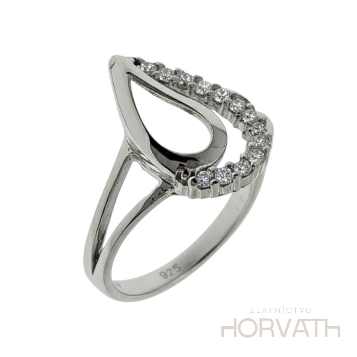 Strieborný dámsky prsteň vyrobený zo striebra 925/000.Typ povrchovej úpravy u tohto šperku je ródium.Ródium je chemický prvok obľúbený u šperkárov.Je to kov strieborno-bielej farby a patrí medzi najdrahšie kovy.Táto povrchová úprava slúži na ochranu striebra ,predlžuje striebru životnosť,striebro tak neoxiduje,nežltne a stále sa krásne leskne.
