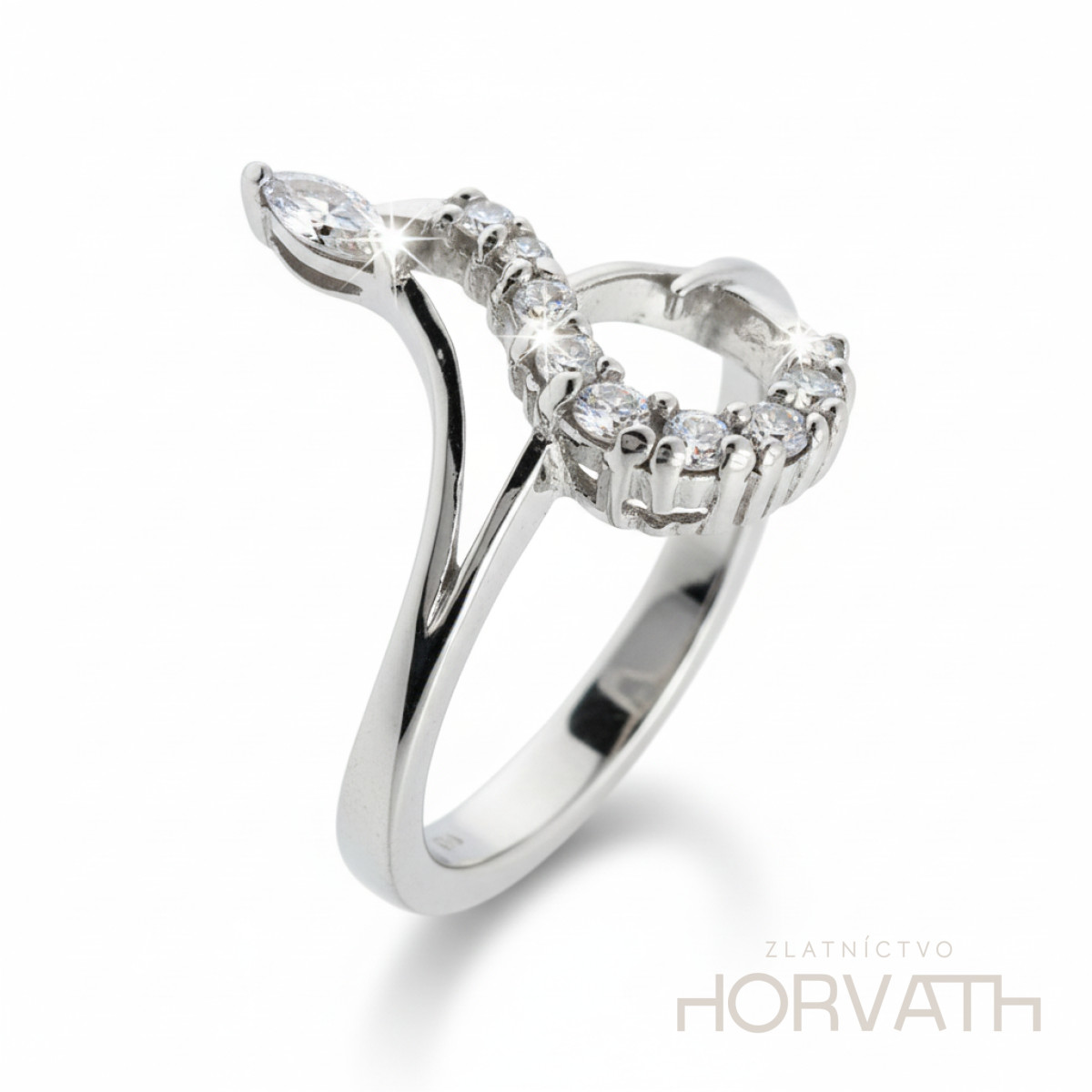 Strieborný dámsky prsteň vyrobený zo striebra 925/000.Typ povrchovej úpravy u tohto šperku je ródium.Ródium je chemický prvok obľúbený u šperkárov.Je to kov strieborno-bielej farby a patrí medzi najdrahšie kovy.Táto povrchová úprava slúži na ochranu striebra ,predlžuje striebru životnosť,striebro tak neoxiduje,nežltne a stále sa krásne leskne.