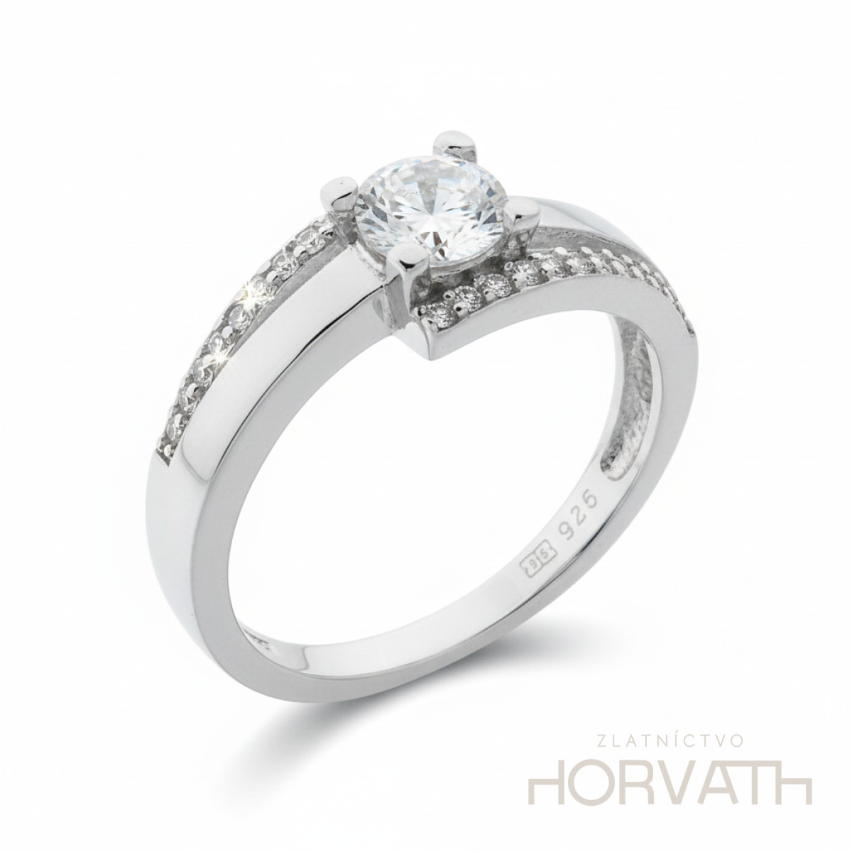 Strieborný dámsky prsteň vyrobený zo striebra 925/000.Typ povrchovej úpravy u tohto šperku je ródium.Ródium je chemický prvok obľúbený u šperkárov.Je to kov strieborno-bielej farby a patrí medzi najdrahšie kovy.Táto povrchová úprava slúži na ochranu striebra ,predlžuje striebru životnosť,striebro tak neoxiduje,nežltne a stále sa krásne leskne.