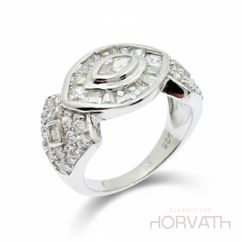 Strieborný dámsky prsteň vyrobený zo striebra 925/000.Typ povrchovej úpravy u tohto šperku je ródium.Ródium je chemický prvok obľúbený u šperkárov.Je to kov strieborno-bielej farby a patrí medzi najdrahšie kovy.Táto povrchová úprava slúži na ochranu striebra ,predlžuje striebru životnosť,striebro tak neoxiduje,nežltne a stále sa krásne leskne.