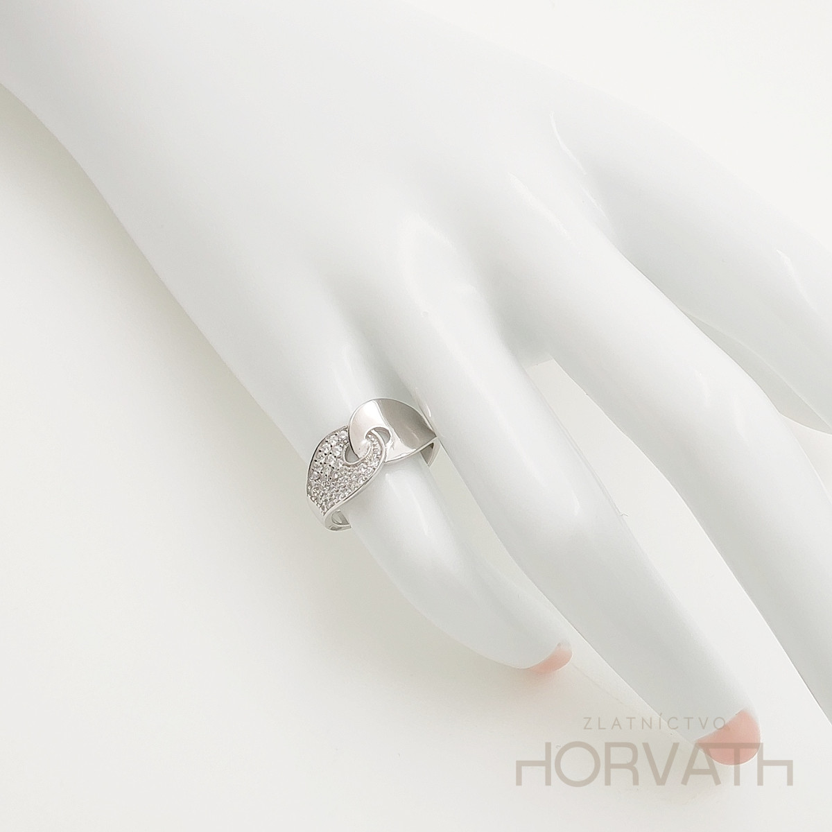 Strieborný dámsky prsteň vyrobený zo striebra 925/000.Typ povrchovej úpravy u tohto šperku je ródium.Ródium je chemický prvok obľúbený u šperkárov.Je to kov strieborno-bielej farby a patrí medzi najdrahšie kovy.Táto povrchová úprava slúži na ochranu striebra ,predlžuje striebru životnosť,striebro tak neoxiduje,nežltne a stále sa krásne leskne.