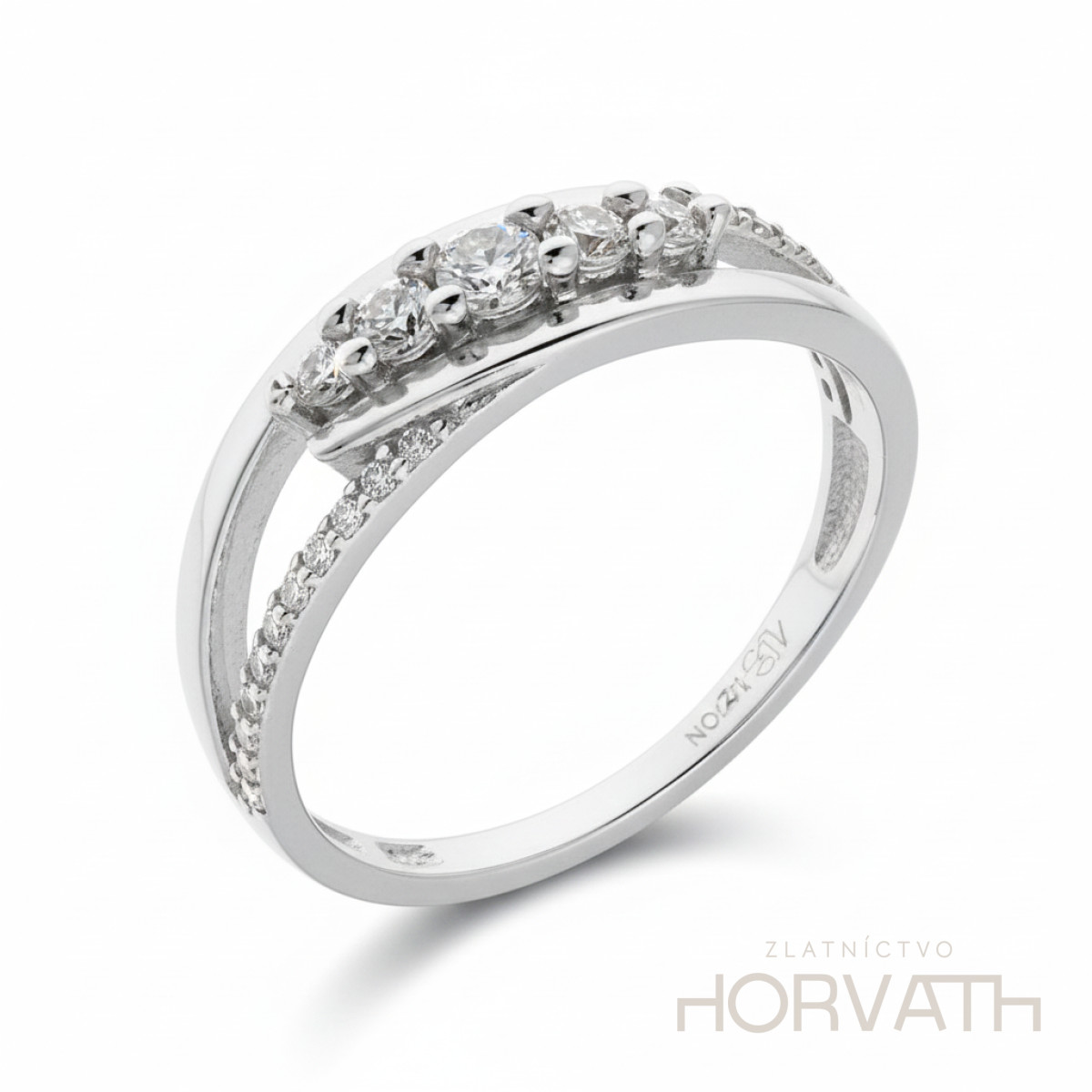 Strieborný dámsky prsteň vyrobený zo striebra 925/000.Typ povrchovej úpravy u tohto šperku je ródium.Ródium je chemický prvok obľúbený u šperkárov.Je to kov strieborno-bielej farby a patrí medzi najdrahšie kovy.Táto povrchová úprava slúži na ochranu striebra ,predlžuje striebru životnosť,striebro tak neoxiduje,nežltne a stále sa krásne leskne.