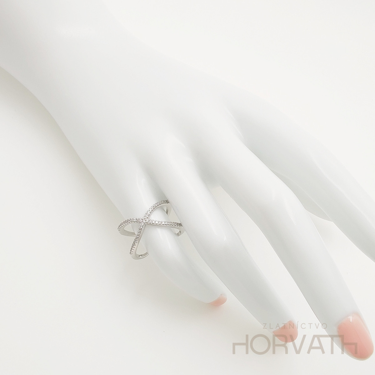 Strieborný dámsky prsteň vyrobený zo striebra 925/000.Typ povrchovej úpravy u tohto šperku je ródium.Ródium je chemický prvok obľúbený u šperkárov.Je to kov strieborno-bielej farby a patrí medzi najdrahšie kovy.Táto povrchová úprava slúži na ochranu striebra ,predlžuje striebru životnosť,striebro tak neoxiduje,nežltne a stále sa krásne leskne.