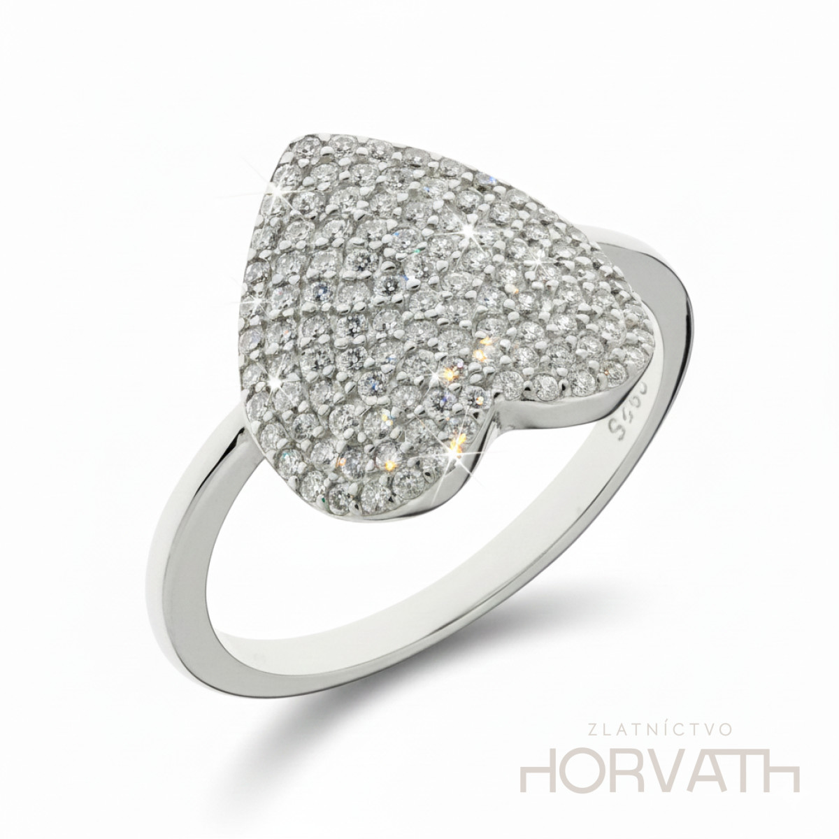Strieborný dámsky prsteň vyrobený zo striebra 925/000.Typ povrchovej úpravy u tohto šperku je ródium.Ródium je chemický prvok obľúbený u šperkárov.Je to kov strieborno-bielej farby a patrí medzi najdrahšie kovy.Táto povrchová úprava slúži na ochranu striebra ,predlžuje striebru životnosť,striebro tak neoxiduje,nežltne a stále sa krásne leskne.