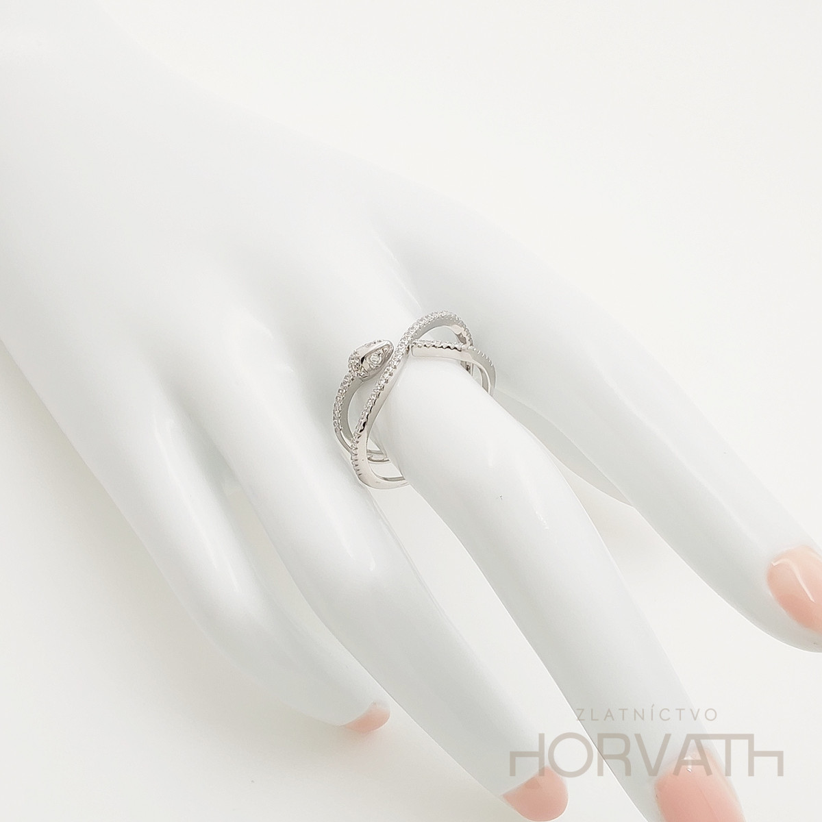 Strieborný dámsky prsteň vyrobený zo striebra 925/000.Typ povrchovej úpravy u tohto šperku je ródium.Ródium je chemický prvok obľúbený u šperkárov.Je to kov strieborno-bielej farby a patrí medzi najdrahšie kovy.Táto povrchová úprava slúži na ochranu striebra ,predlžuje striebru životnosť,striebro tak neoxiduje,nežltne a stále sa krásne leskne.