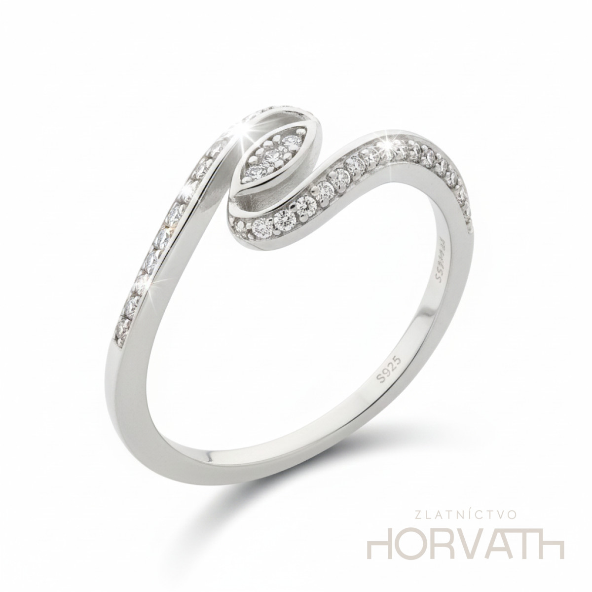 Strieborný dámsky prsteň vyrobený zo striebra 925/000.Typ povrchovej úpravy u tohto šperku je ródium.Ródium je chemický prvok obľúbený u šperkárov.Je to kov strieborno-bielej farby a patrí medzi najdrahšie kovy.Táto povrchová úprava slúži na ochranu striebra ,predlžuje striebru životnosť,striebro tak neoxiduje,nežltne a stále sa krásne leskne.