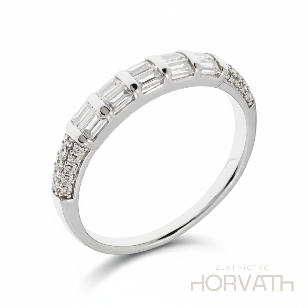 Strieborný dámsky prsteň vyrobený zo striebra 925/000.Typ povrchovej úpravy u tohto šperku je ródium.Ródium je chemický prvok obľúbený u šperkárov.Je to kov strieborno-bielej farby a patrí medzi najdrahšie kovy.Táto povrchová úprava slúži na ochranu striebra ,predlžuje striebru životnosť,striebro tak neoxiduje,nežltne a stále sa krásne leskne.