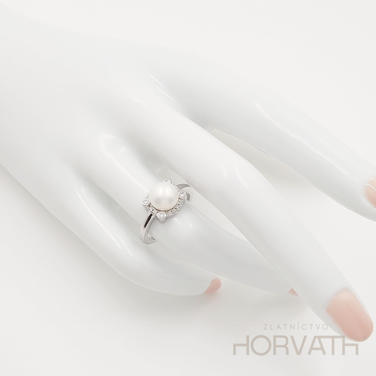 Strieborný dámsky prsteň vyrobený zo striebra 925/000.Typ povrchovej úpravy u tohto šperku je ródium.Ródium je chemický prvok obľúbený u šperkárov.Je to kov strieborno-bielej farby a patrí medzi najdrahšie kovy.Táto povrchová úprava slúži na ochranu striebra ,predlžuje striebru životnosť,striebro tak neoxiduje,nežltne a stále sa krásne leskne. Rozmer perly 7-8 mm.
