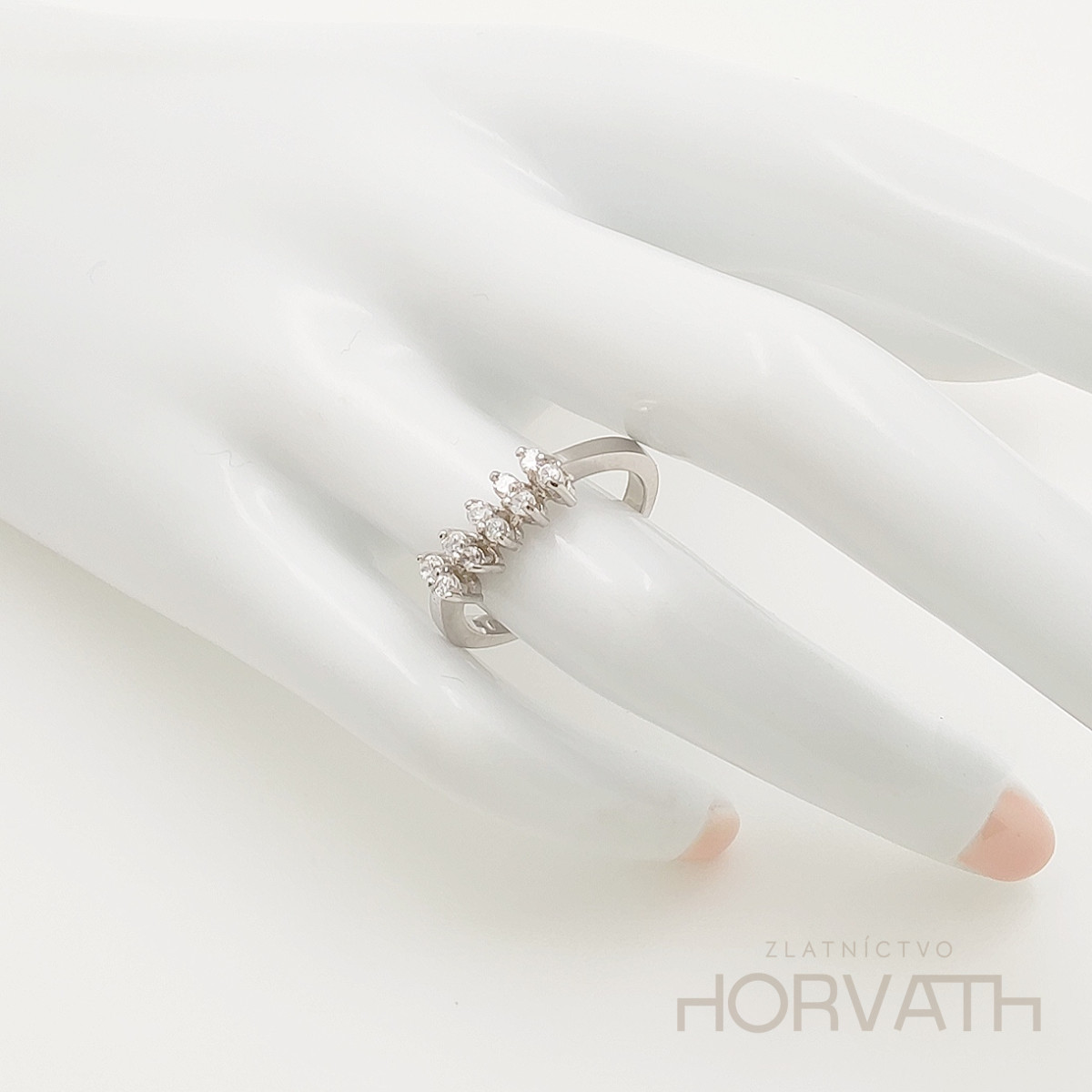 Strieborný dámsky prsteň vyrobený zo striebra 925/000.Typ povrchovej úpravy u tohto šperku je ródium.Ródium je chemický prvok obľúbený u šperkárov.Je to kov strieborno-bielej farby a patrí medzi najdrahšie kovy.Táto povrchová úprava slúži na ochranu striebra ,predlžuje striebru životnosť,striebro tak neoxiduje,nežltne a stále sa krásne leskne.