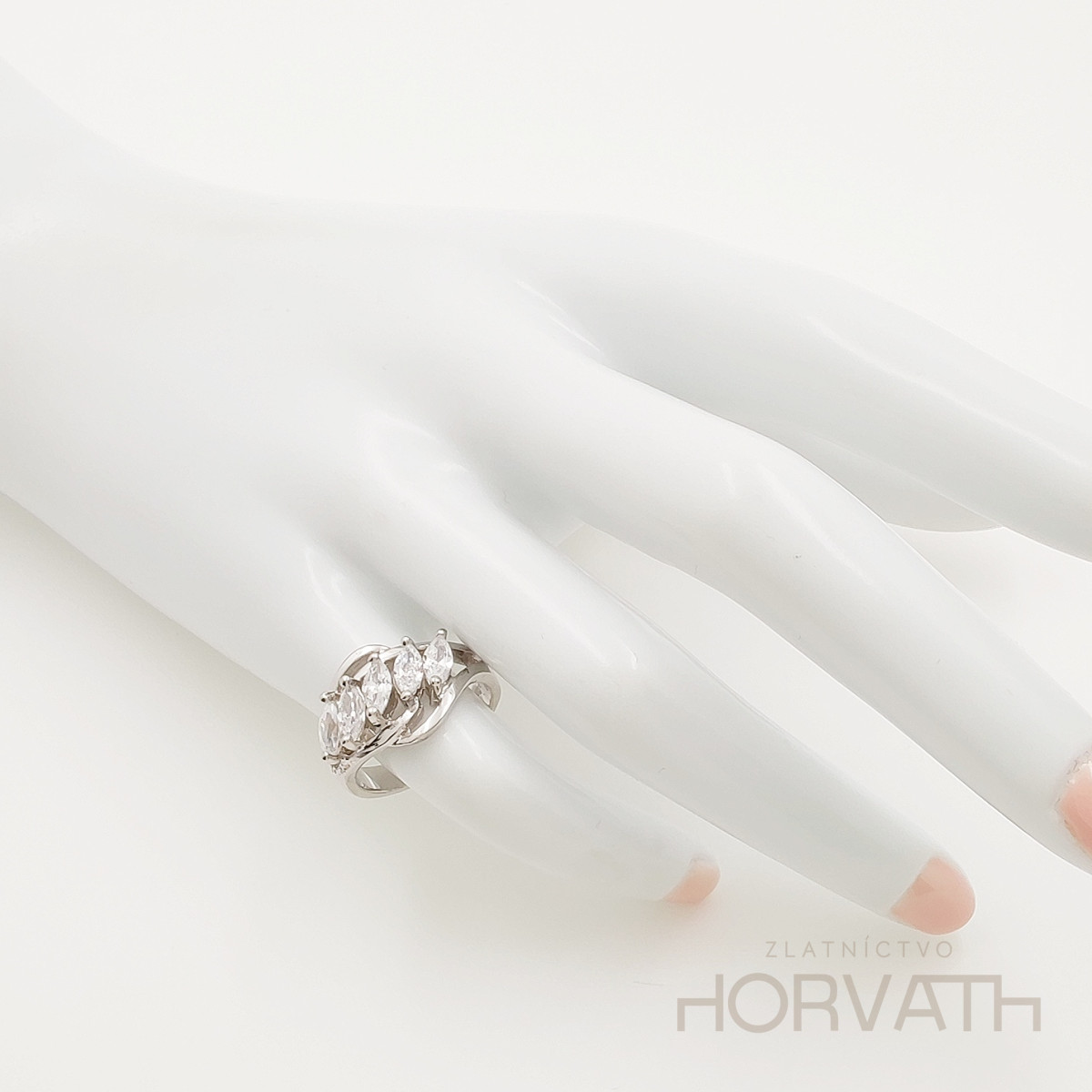 Strieborný dámsky prsteň vyrobený zo striebra 925/000.Typ povrchovej úpravy u tohto šperku je ródium.Ródium je chemický prvok obľúbený u šperkárov.Je to kov strieborno-bielej farby a patrí medzi najdrahšie kovy.Táto povrchová úprava slúži na ochranu striebra ,predlžuje striebru životnosť,striebro tak neoxiduje,nežltne a stále sa krásne leskne.