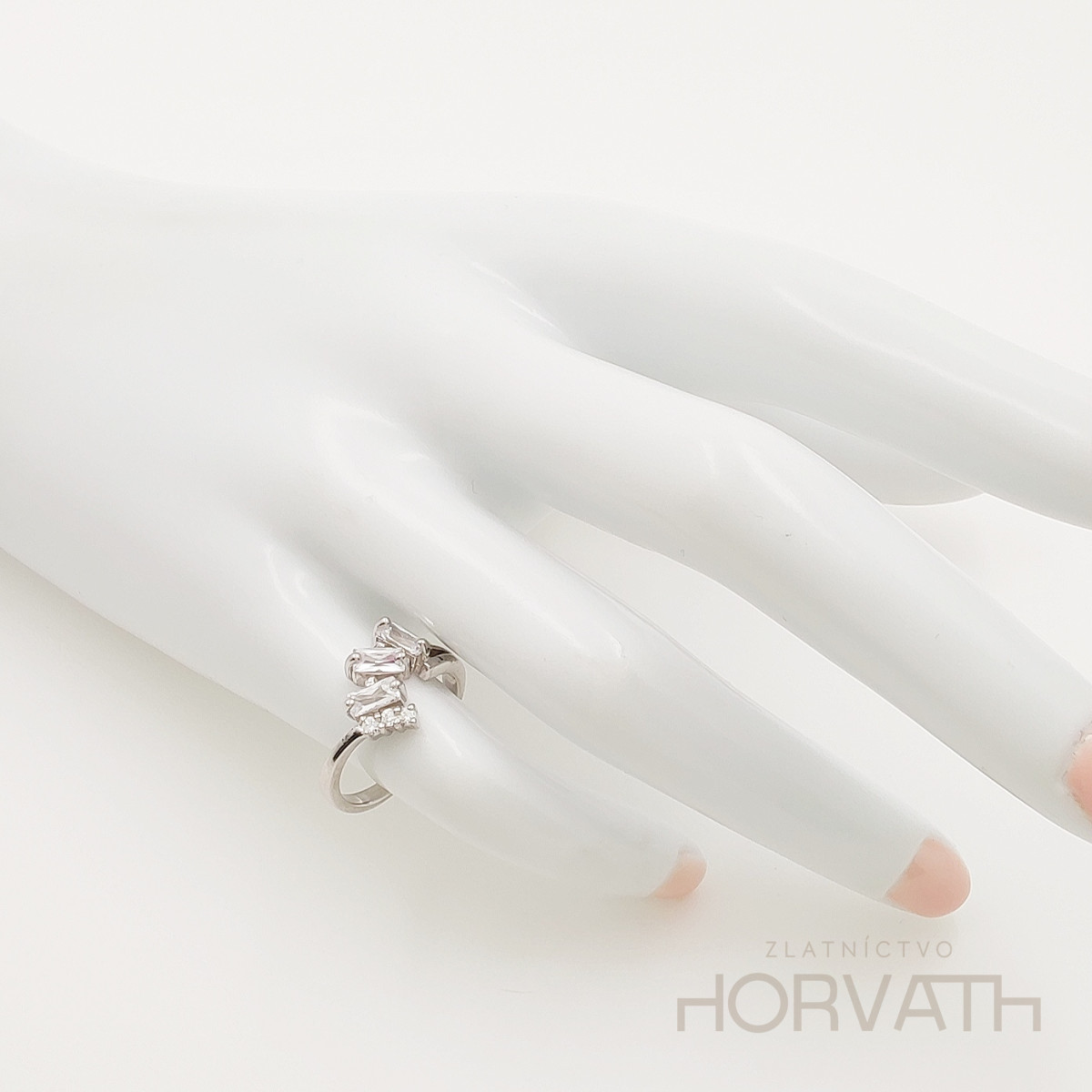 Strieborný dámsky prsteň vyrobený zo striebra 925/000.Typ povrchovej úpravy u tohto šperku je ródium.Ródium je chemický prvok obľúbený u šperkárov.Je to kov strieborno-bielej farby a patrí medzi najdrahšie kovy.Táto povrchová úprava slúži na ochranu striebra ,predlžuje striebru životnosť,striebro tak neoxiduje,nežltne a stále sa krásne leskne.