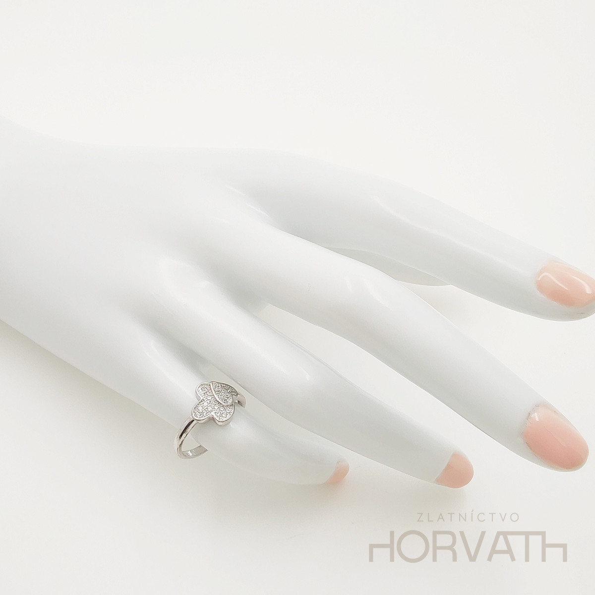 Strieborný dámsky prsteň vyrobený zo striebra 925/000.Typ povrchovej úpravy u tohto šperku je ródium. Ródium je chemický prvok obľúbený u šperkárov.Je to kov strieborno-bielej farby a patrí medzi najdrahšie kovy.Táto povrchová úprava slúži na ochranu striebra ,predlžuje striebru životnosť,striebro tak neoxiduje,nežltne a stále sa krásne leskne.