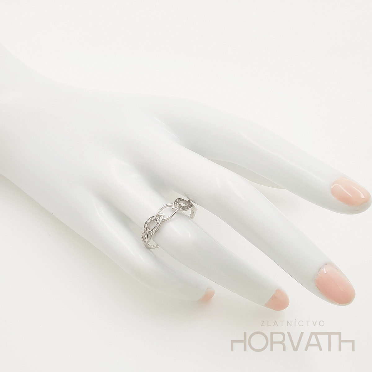 Strieborný dámsky prsteň vyrobený zo striebra 925/000.Typ povrchovej úpravy u tohto šperku je ródium.Ródium je chemický prvok obľúbený u šperkárov.Je to kov strieborno-bielej farby a patrí medzi najdrahšie kovy.Táto povrchová úprava slúži na ochranu striebra ,predlžuje striebru životnosť,striebro tak neoxiduje,nežltne a stále sa krásne leskne.