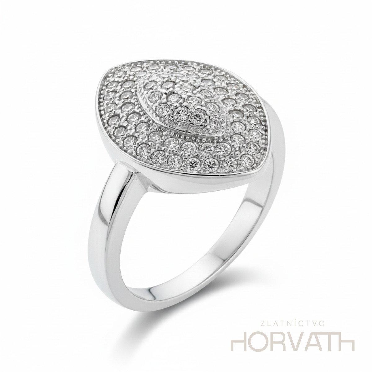 Strieborný dámsky prsteň vyrobený zo striebra 925/000.Typ povrchovej úpravy u tohto šperku je ródium.Ródium je chemický prvok obľúbený u šperkárov.Je to kov strieborno-bielej farby a patrí medzi najdrahšie kovy.Táto povrchová úprava slúži na ochranu striebra ,predlžuje striebru životnosť,striebro tak neoxiduje,nežltne a stále sa krásne leskne.