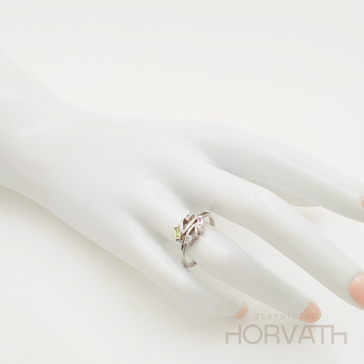 Strieborný dámsky prsteň vyrobený zo striebra 925/000.Typ povrchovej úpravy u tohto šperku je ródium.Ródium je chemický prvok obľúbený u šperkárov.Je to kov strieborno-bielej farby a patrí medzi najdrahšie kovy.Táto povrchová úprava slúži na ochranu striebra ,predlžuje striebru životnosť,striebro tak neoxiduje,nežltne a stále sa krásne leskne.