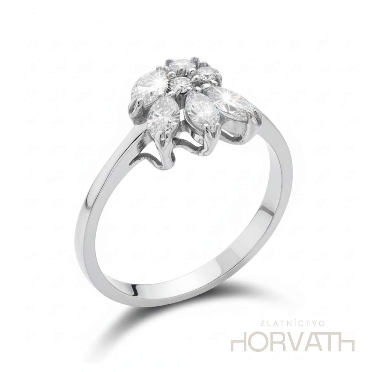 Strieborný dámsky prsteň vyrobený zo striebra 925/000.Typ povrchovej úpravy u tohto šperku je ródium.Ródium je chemický prvok obľúbený u šperkárov.Je to kov strieborno-bielej farby a patrí medzi najdrahšie kovy.Táto povrchová úprava slúži na ochranu striebra ,predlžuje striebru životnosť,striebro tak neoxiduje,nežltne a stále sa krásne leskne.