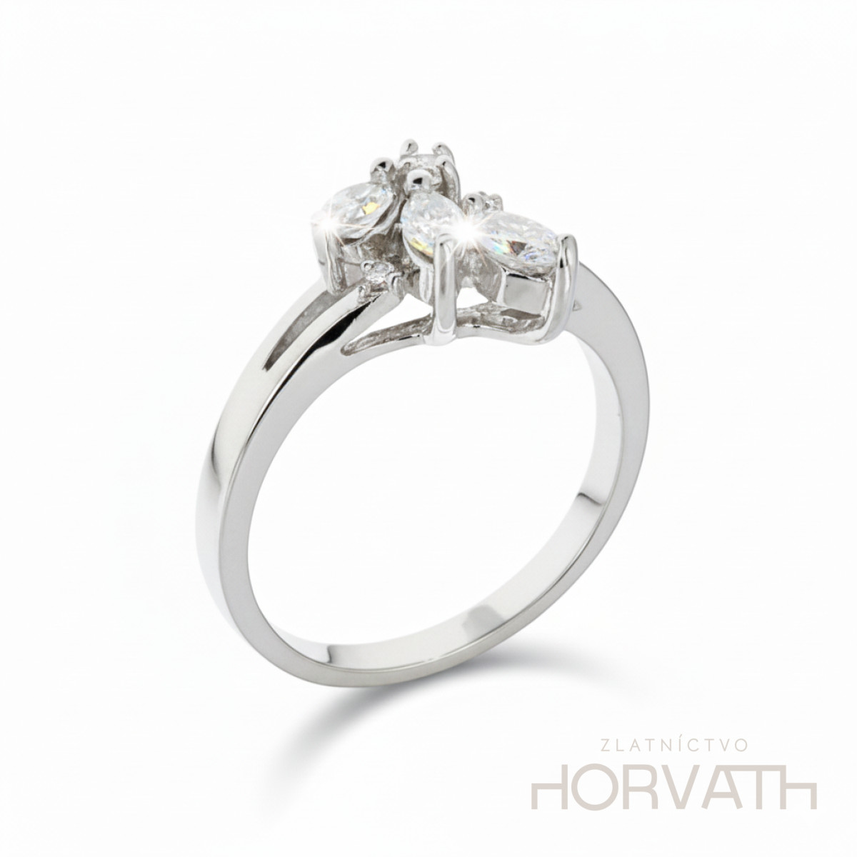 Strieborný dámsky prsteň vyrobený zo striebra 925/000.Typ povrchovej úpravy u tohto šperku je ródium.Ródium je chemický prvok obľúbený u šperkárov.Je to kov strieborno-bielej farby a patrí medzi najdrahšie kovy.Táto povrchová úprava slúži na ochranu striebra ,predlžuje striebru životnosť,striebro tak neoxiduje,nežltne a stále sa krásne leskne.