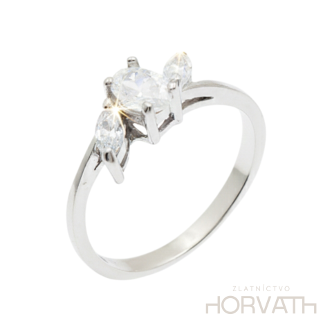 Jemný dámsky prsteň zdobený zirkónmi je vyrobený zo striebra 925/000.Typ povrchovej úpravy u tohto šperku je ródium.Ródium je chemický prvok obľúbený u šperkárov.Je to kov strieborno-bielej farby a patrí medzi najdrahšie kovy.Táto povrchová úprava slúži na ochranu striebra ,predlžuje striebru životnosť,striebro tak neoxiduje,nežltne a stále sa krásne leskne.