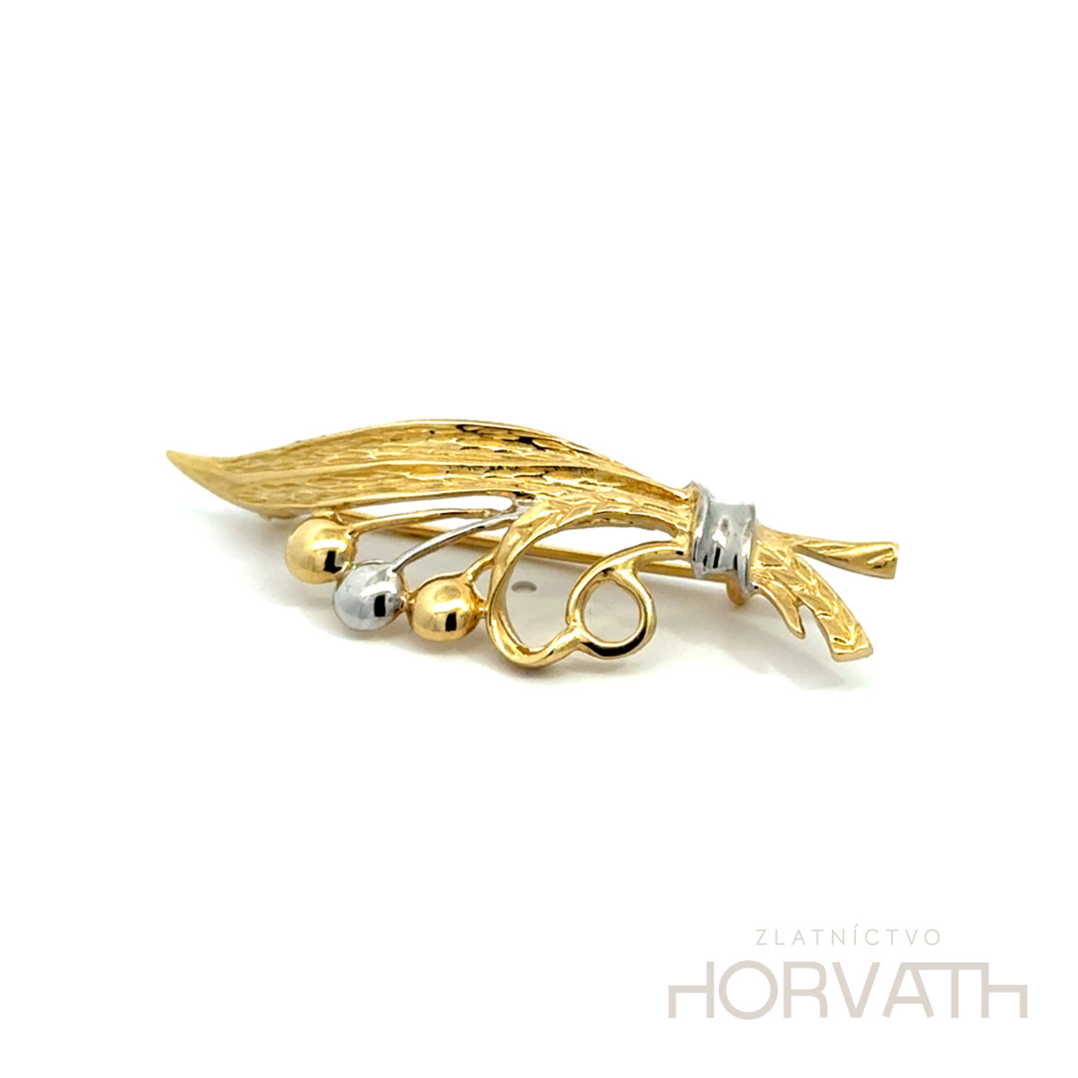 Krásna zlatá brošňa ktorá vyzdvihne outfit je vyrobená zo 14 karátového 585/000.
