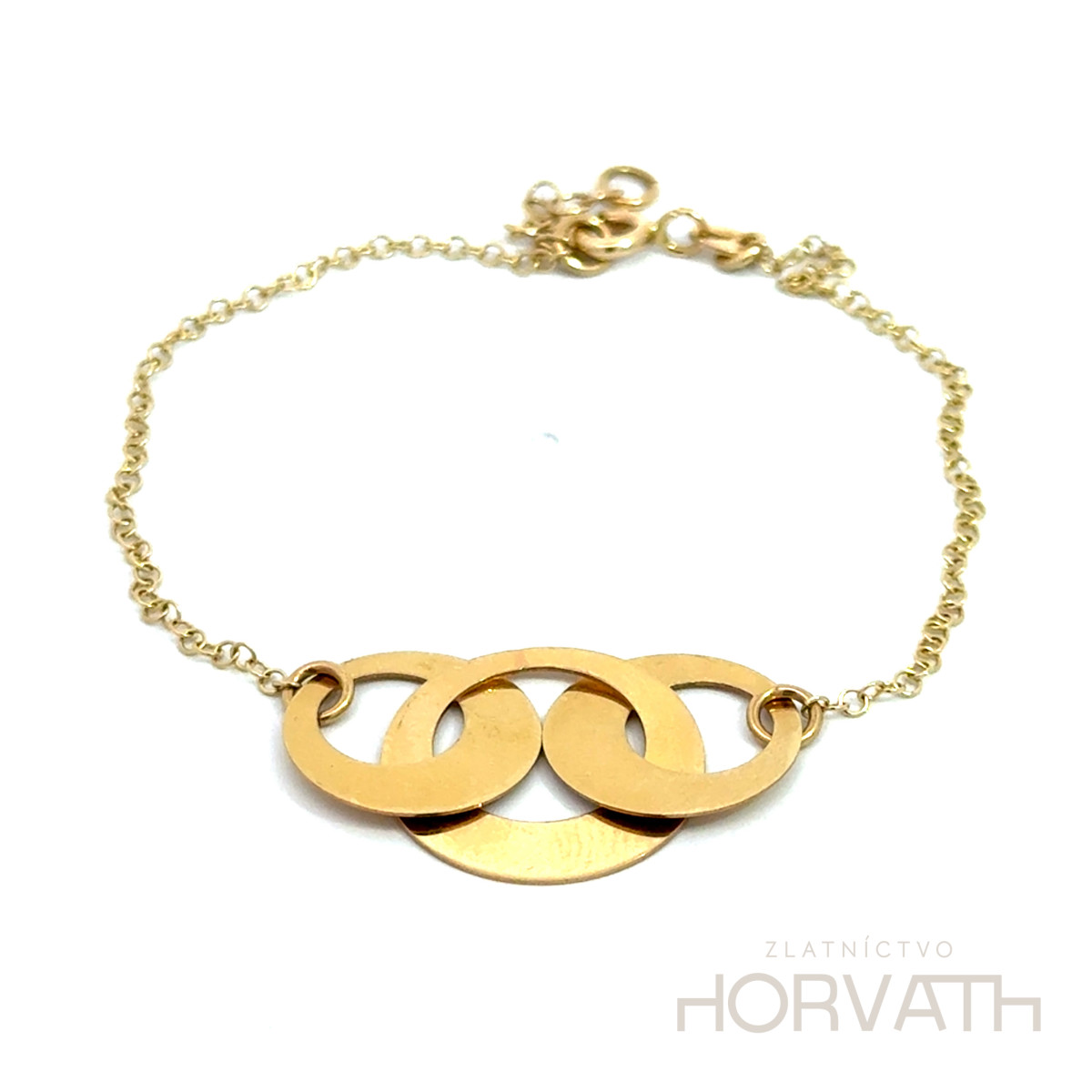 Dámsky zlatý náramok s príveskami kruhov je vyrobený zo 14 karátového zlata 585/1000.