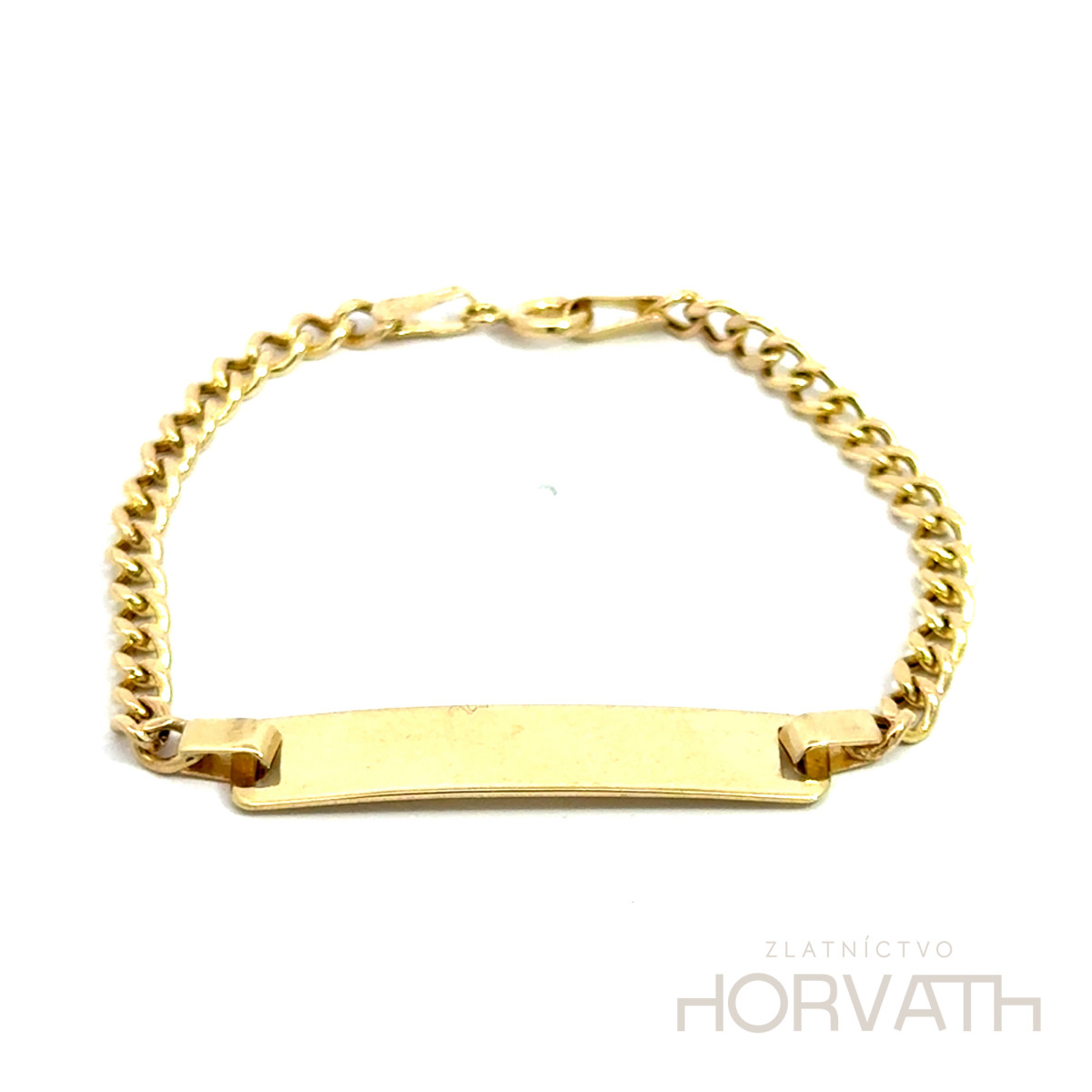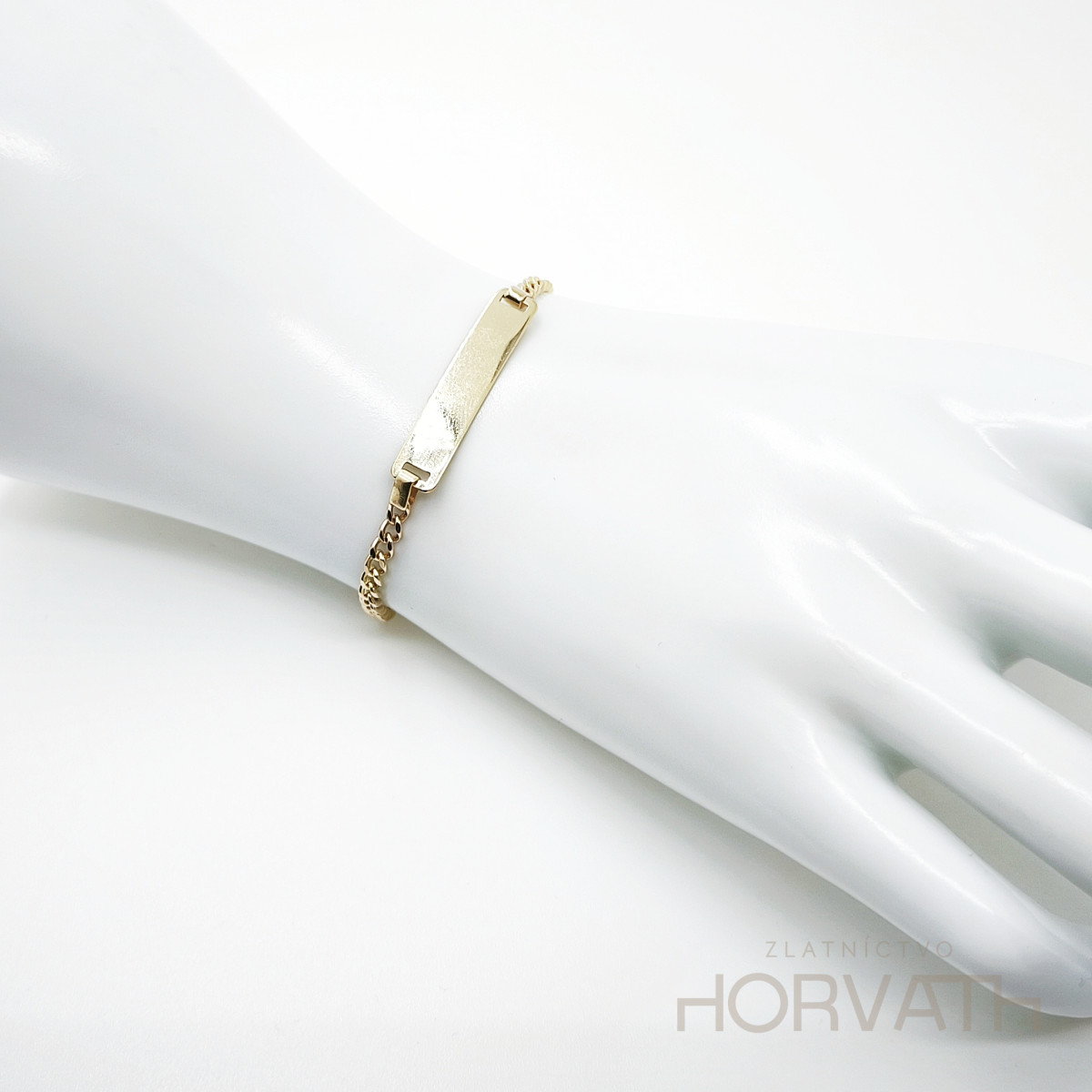Zlatý detský náramok s platničkou, vyrobený zo 14 karátového zlata 585/1000.