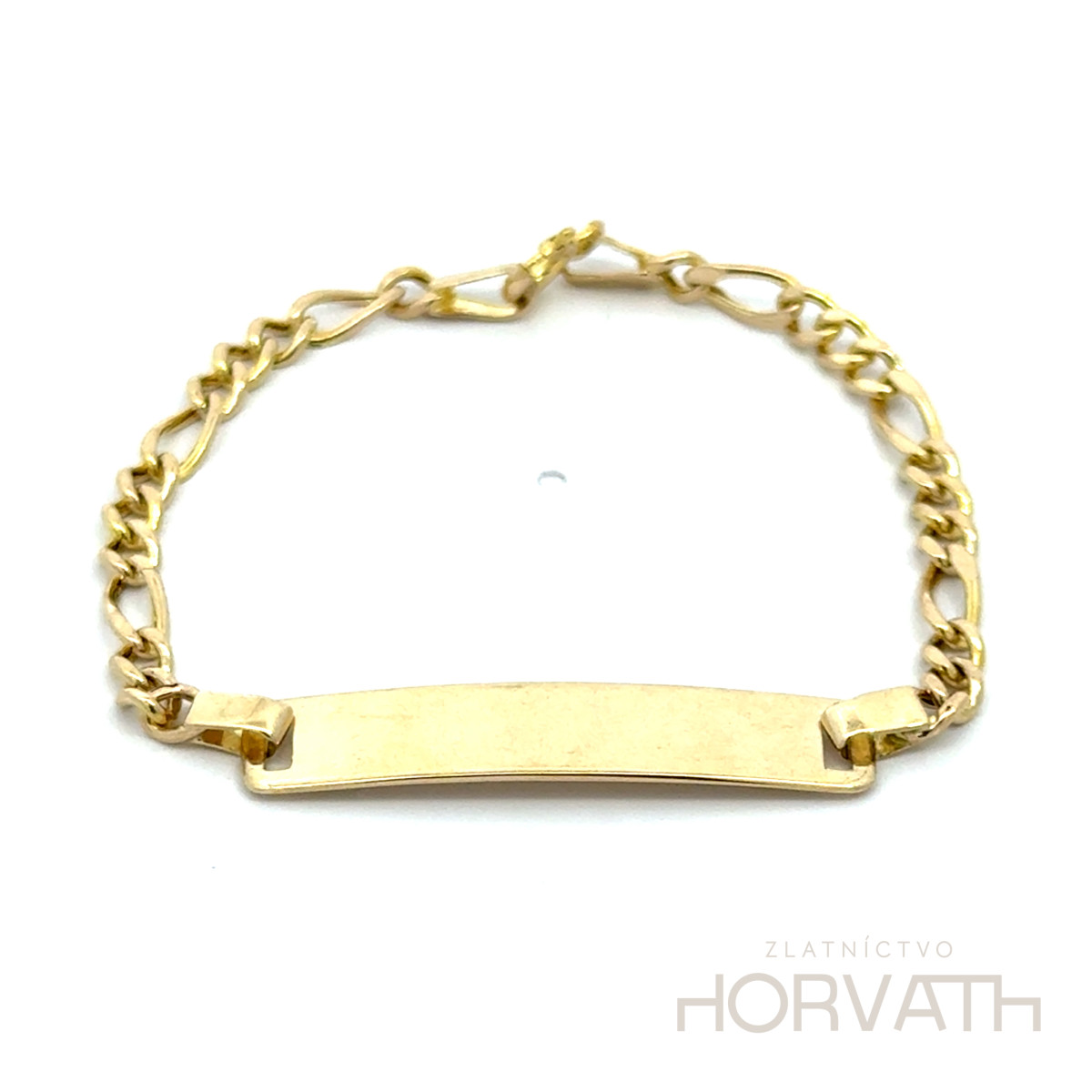 Zlatý detský náramok s platničkou, vyrobený zo 14 karátového zlata 585/1000. Rozmer platničky 30x6 mm.