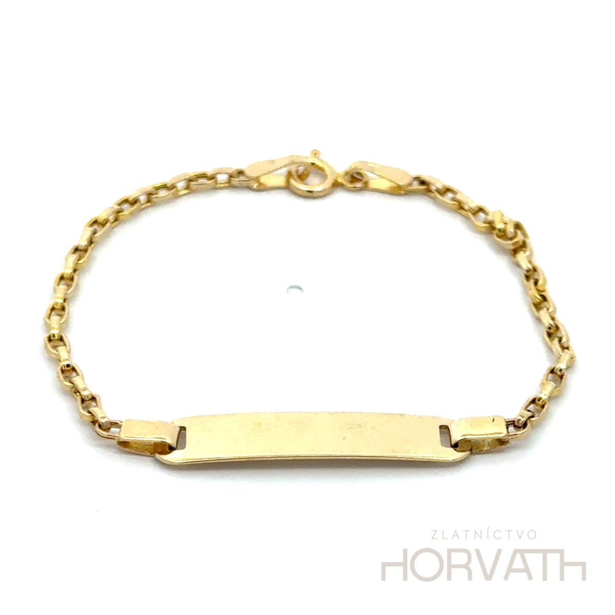 Zlatý detský náramok s platničkou, vyrobený zo 14 karátového zlata 585/1000. Rozmer platníčky 25x6 mm.