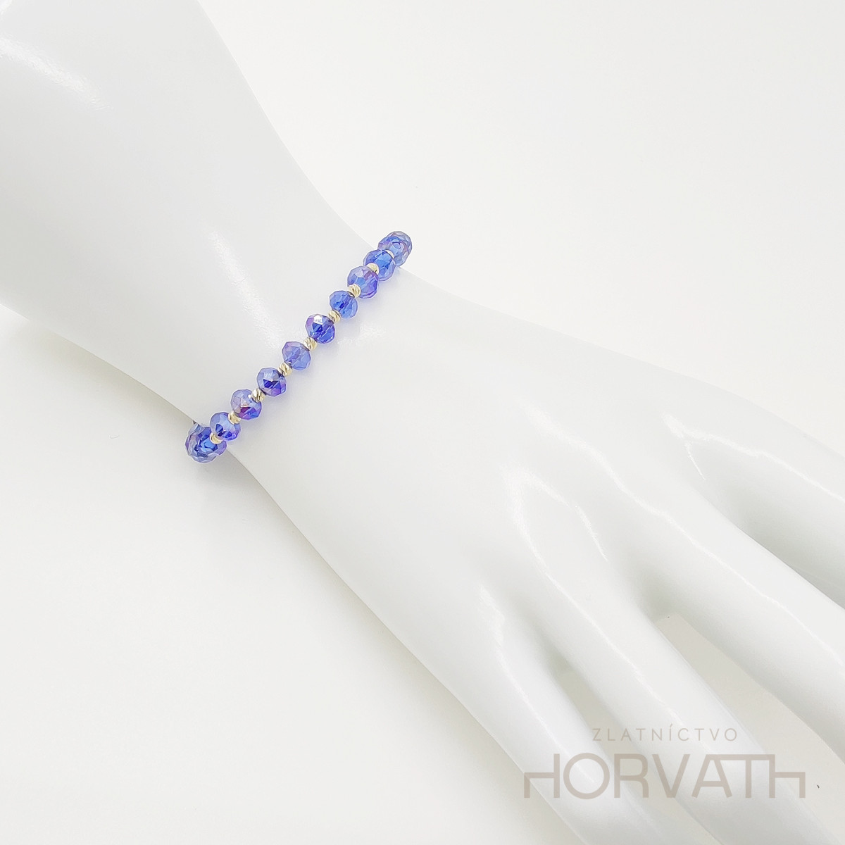 Zlatý náramok kombinovaný s minerálnymi kamienkami ,zlaté guličky sú zo 14 karátového zlata 585/1000.Zapínanie je posuvné, obvod je teda nastaviteľný.