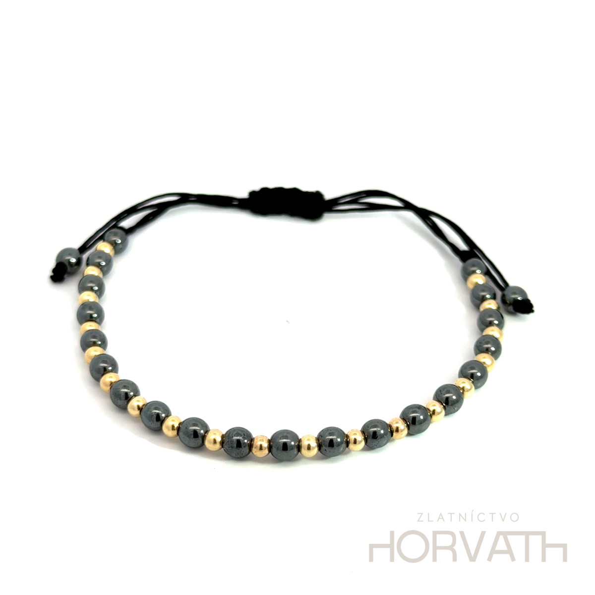 Zlatý náramok kombinovaný s kamienkami ,zlaté guličky sú vyrobené zo 14 karátového zlata 585/1000. Zapínanie je posuvné, obvod je teda nastaviteľný.