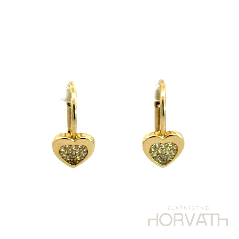 Detské zlaté náušnice na klasické zapínanie, zdobené zirkónmi sú vyrobené zo 14 karátového zlata 585/1000.